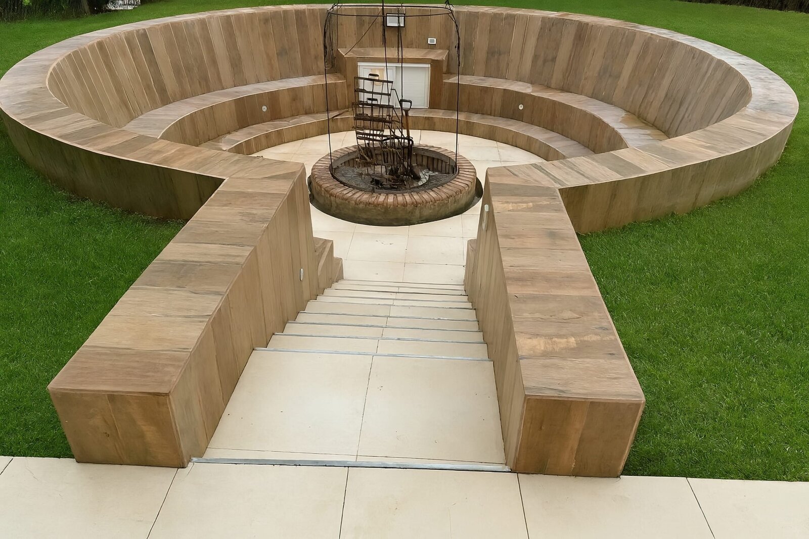 Acceso directo al jardín con el fogón circular estilo anfiteatro