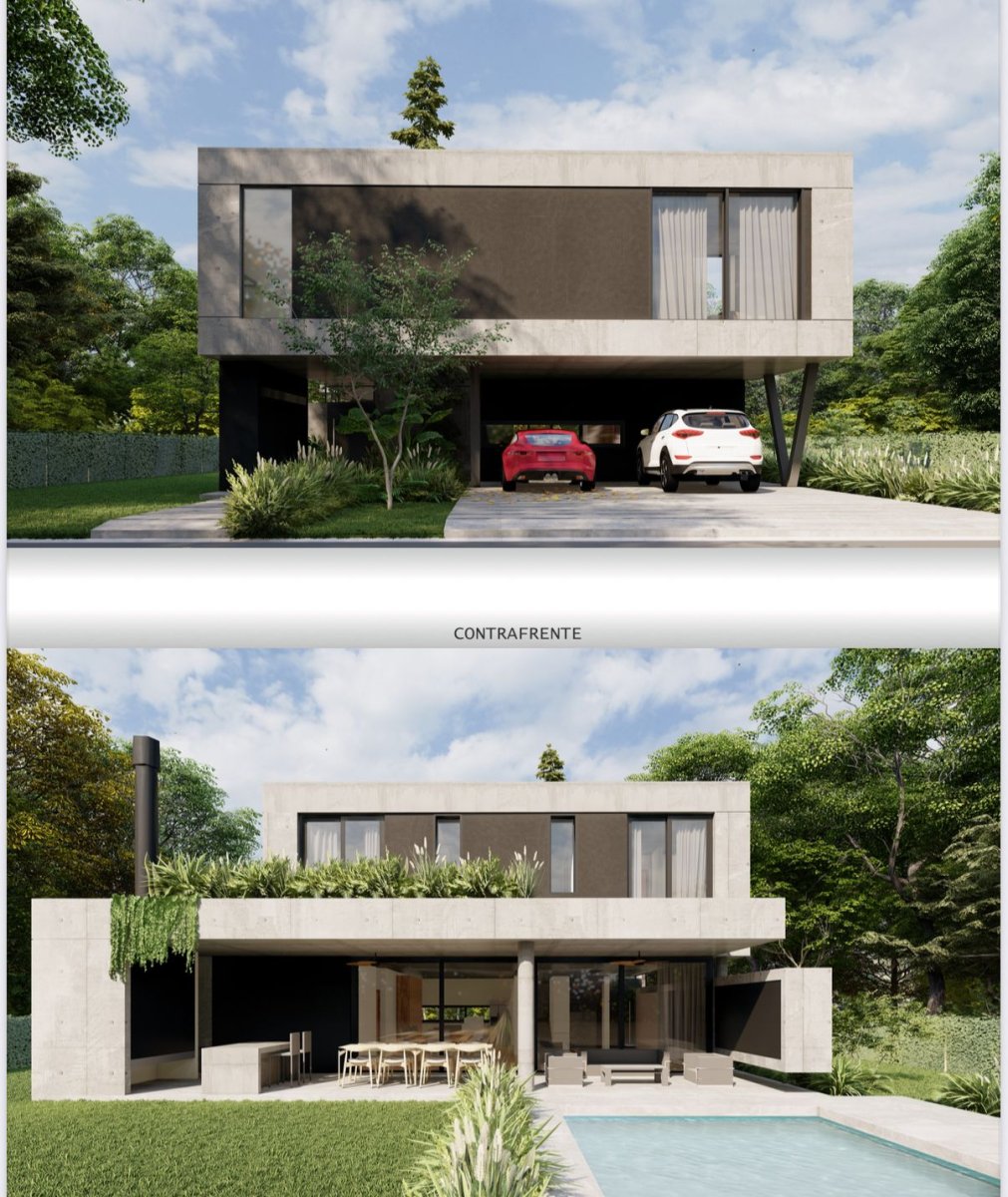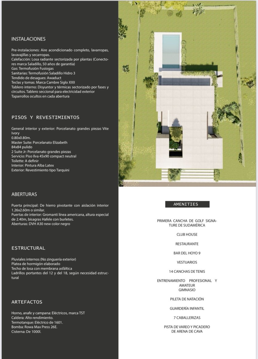 Se trata de una residencia moderna de 372 m² cubiertos y semicubiertos, implantada en un lote de 954 m², dentro del exclusivo barrio La Calesa en Pilará.