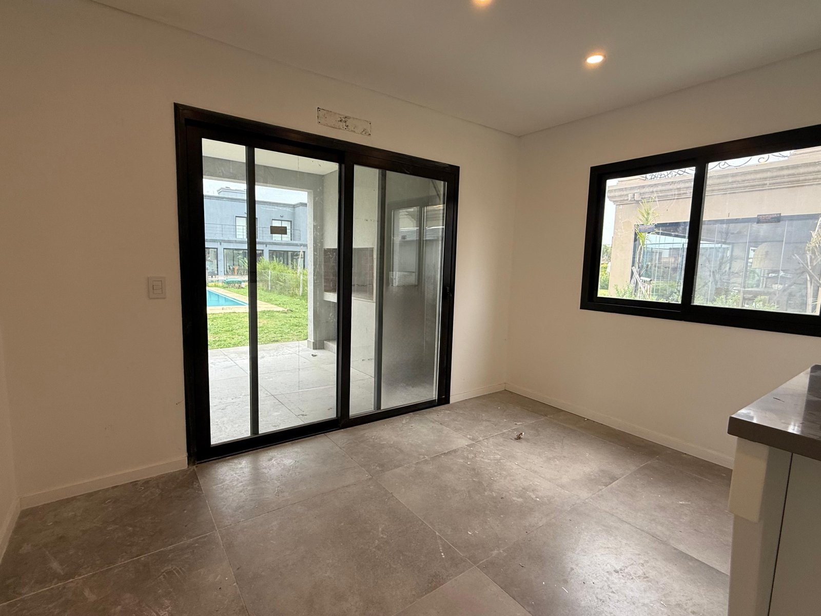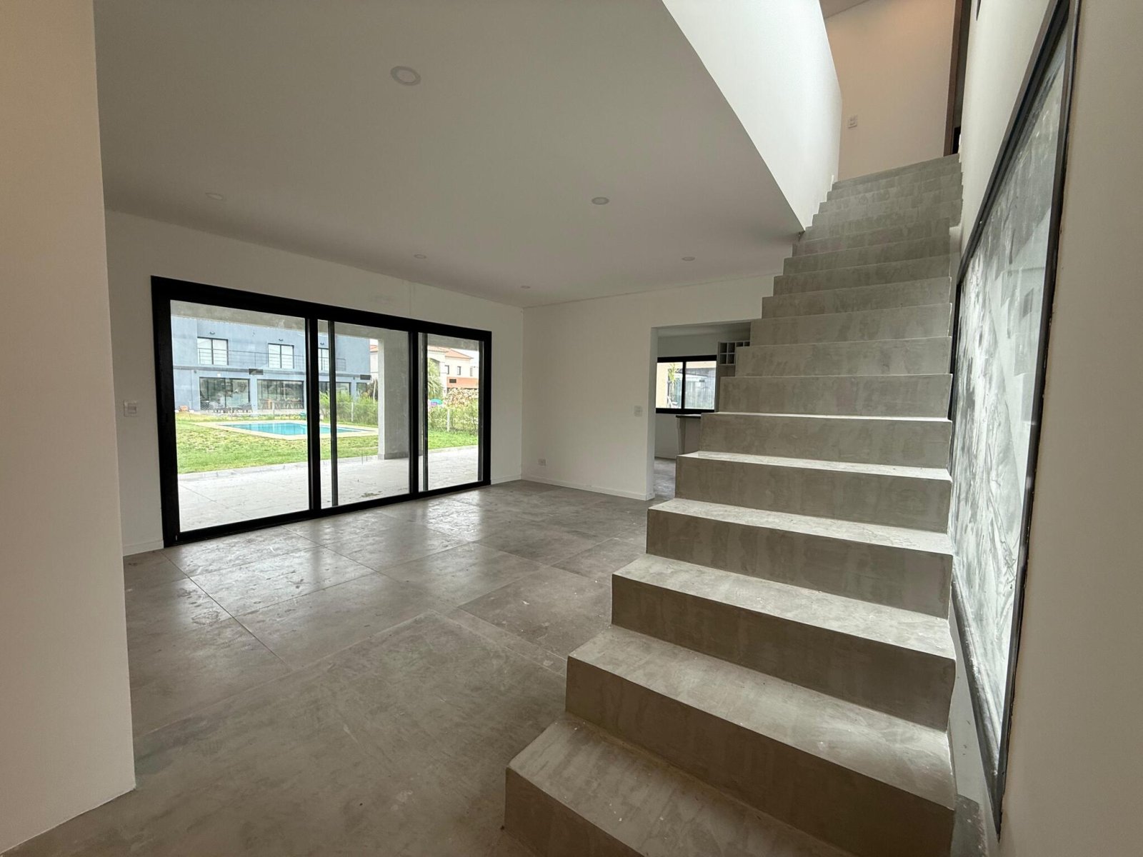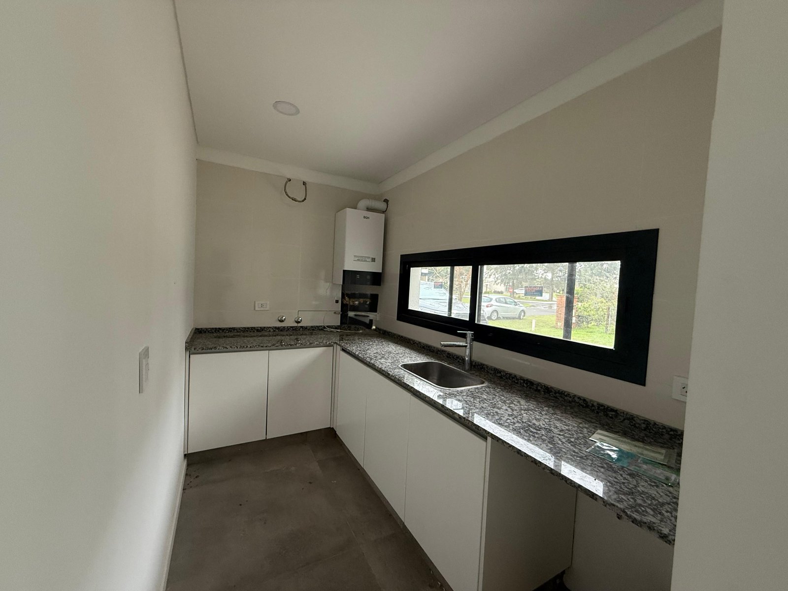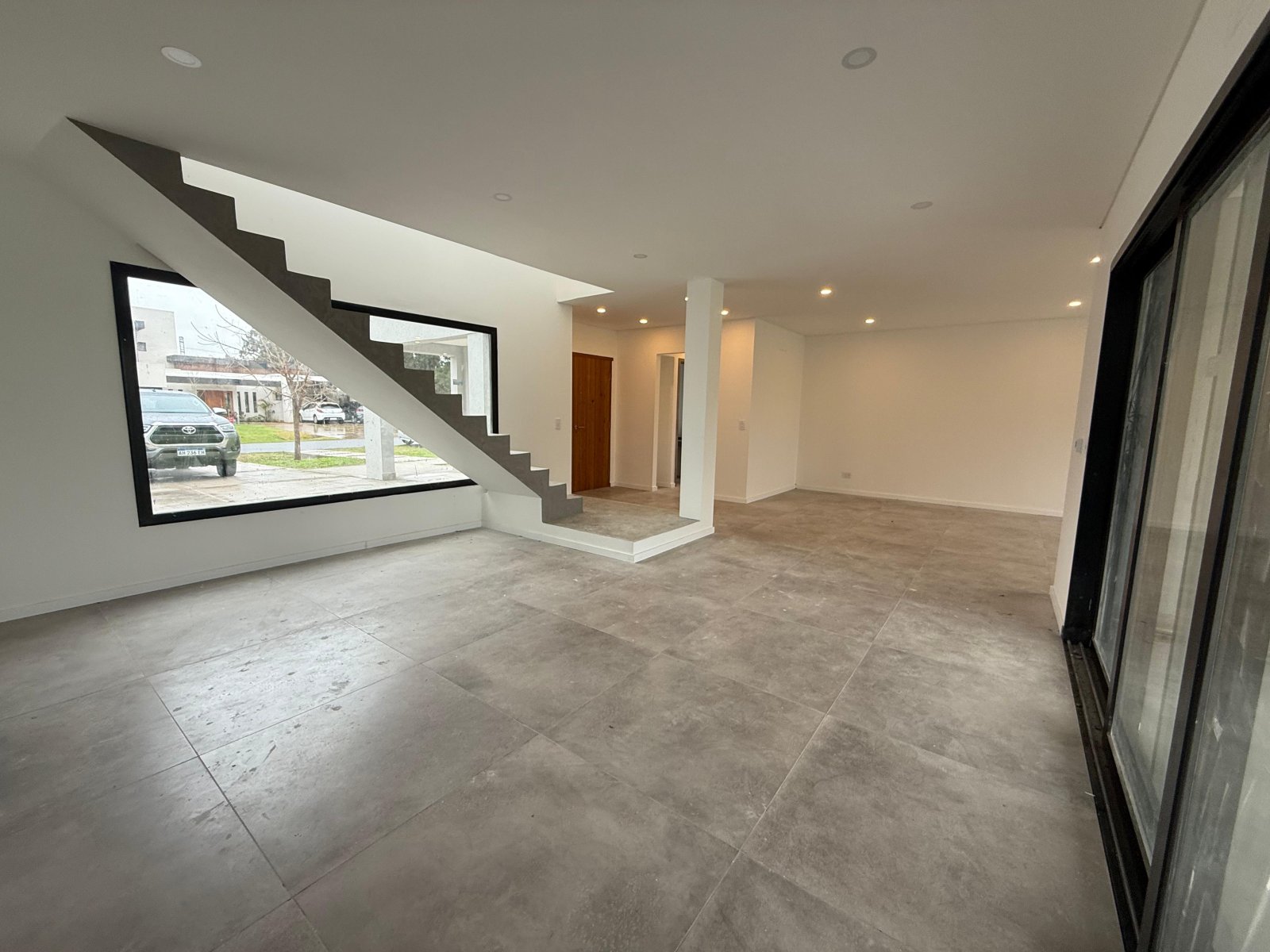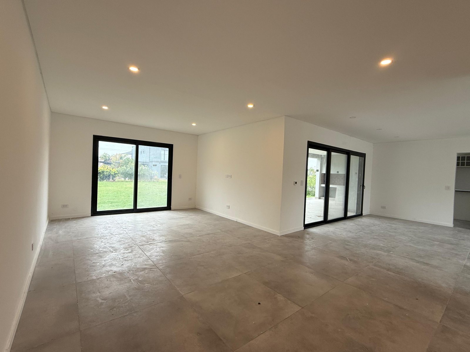 La casa se destaca por su luminosidad y detalles de calidad: aberturas de aluminio negras con DVH y mosquiteros, pisos de porcelanato en todos los ambientes, calefacción por losa radiante con termostato programable y preinstalación para splits.