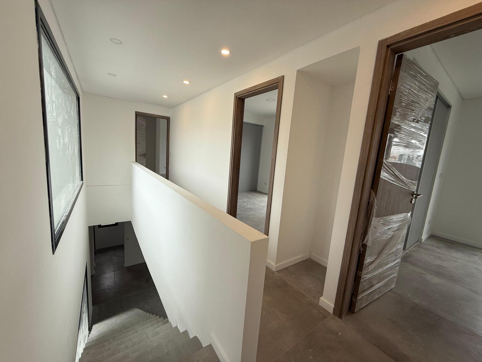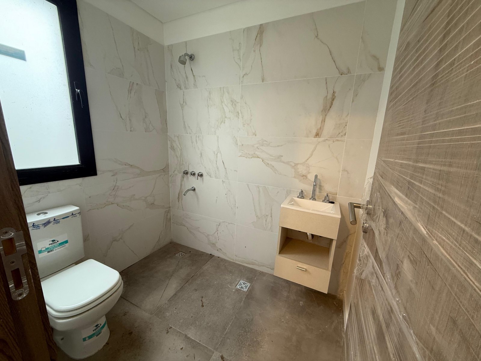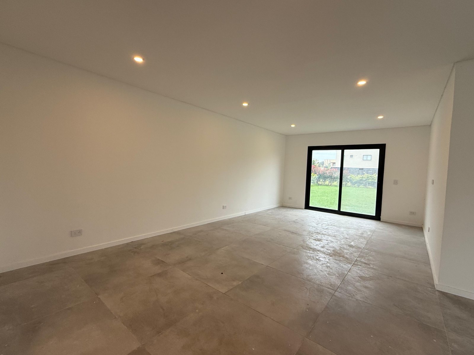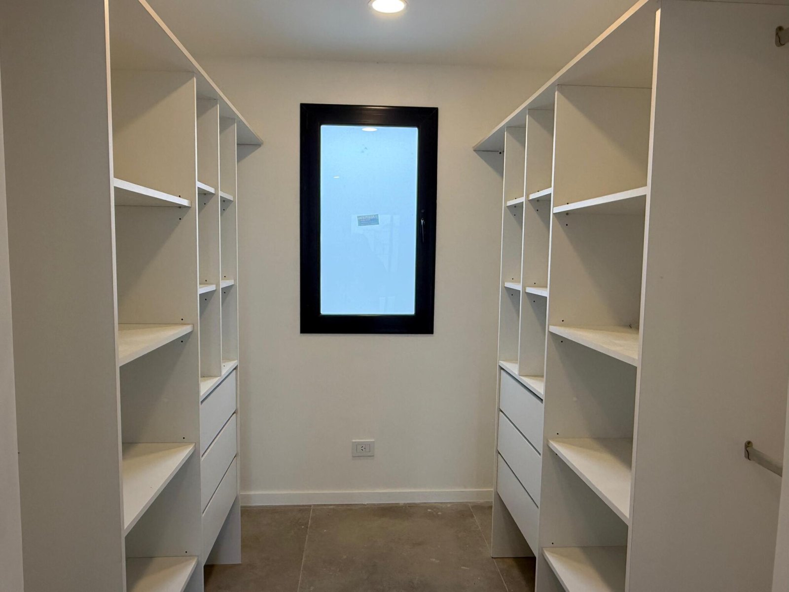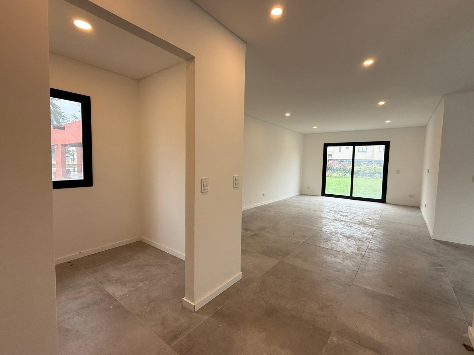 La casa se destaca por su luminosidad y detalles de calidad: aberturas de aluminio negras con DVH y mosquiteros, pisos de porcelanato en todos los ambientes, calefacción por losa radiante con termostato programable y preinstalación para splits.