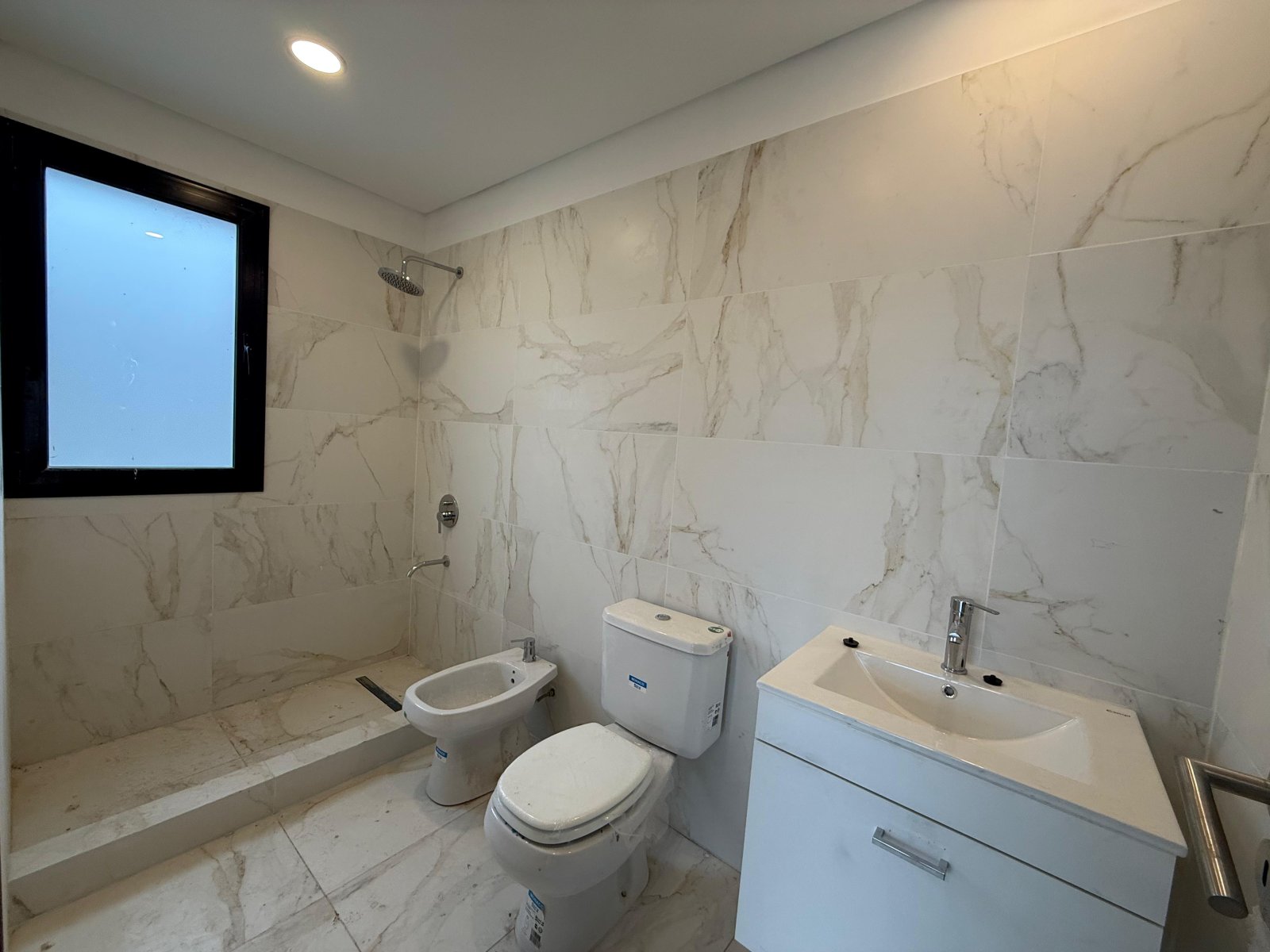 En planta baja, un hall de entrada da paso al living comedor con vistas a la galería y el jardín. La cocina, moderna y equipada con una amplia isla, horno empotrado y gran capacidad de guardado, se integra al comedor diario y al lavadero independiente, que conecta con la dependencia de servicio con baño.
