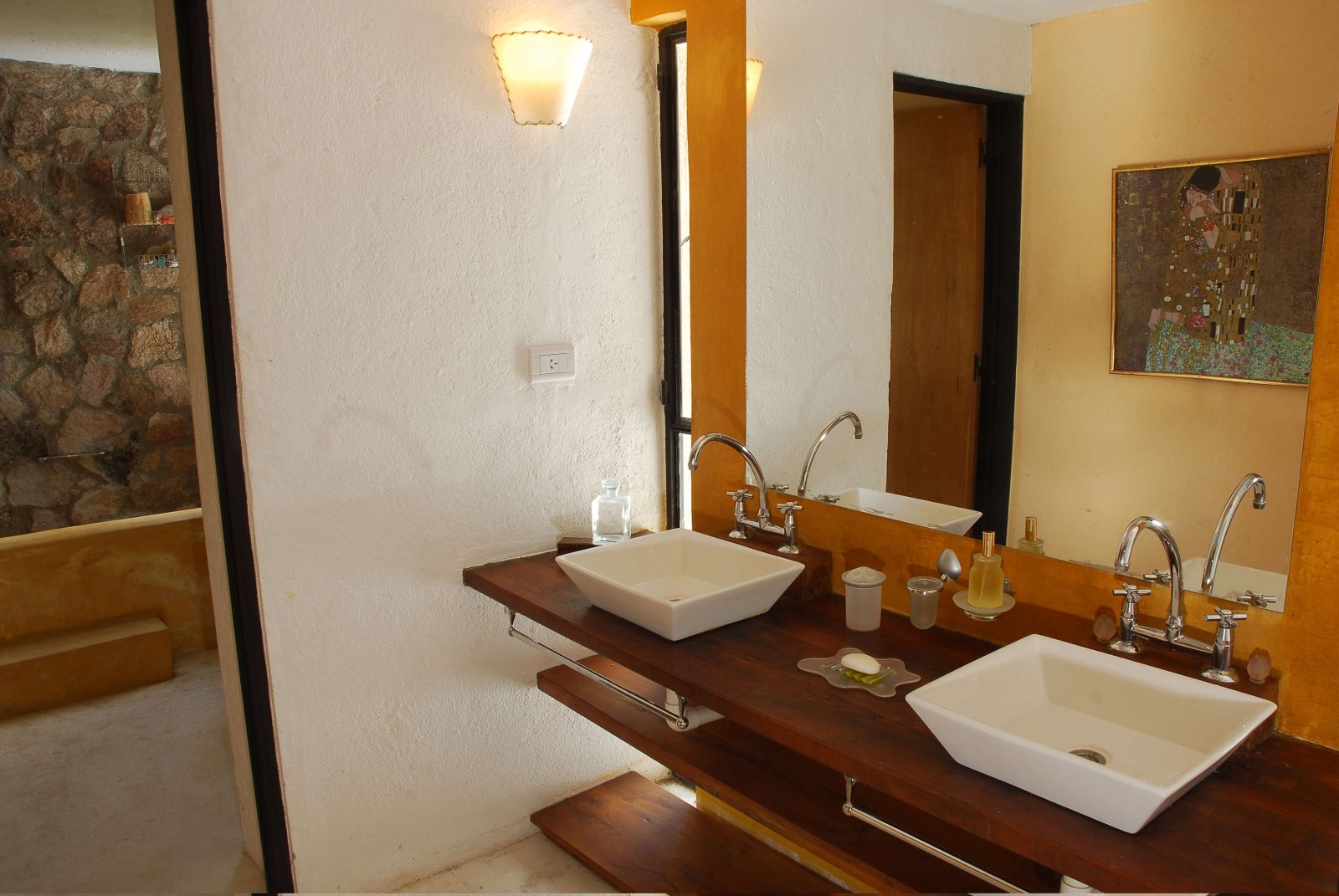En el exterior, jardines parquizados, piscina ubicada en lo alto de la loma y cocheras semicubiertas refuerzan el carácter privado y natural del conjunto.