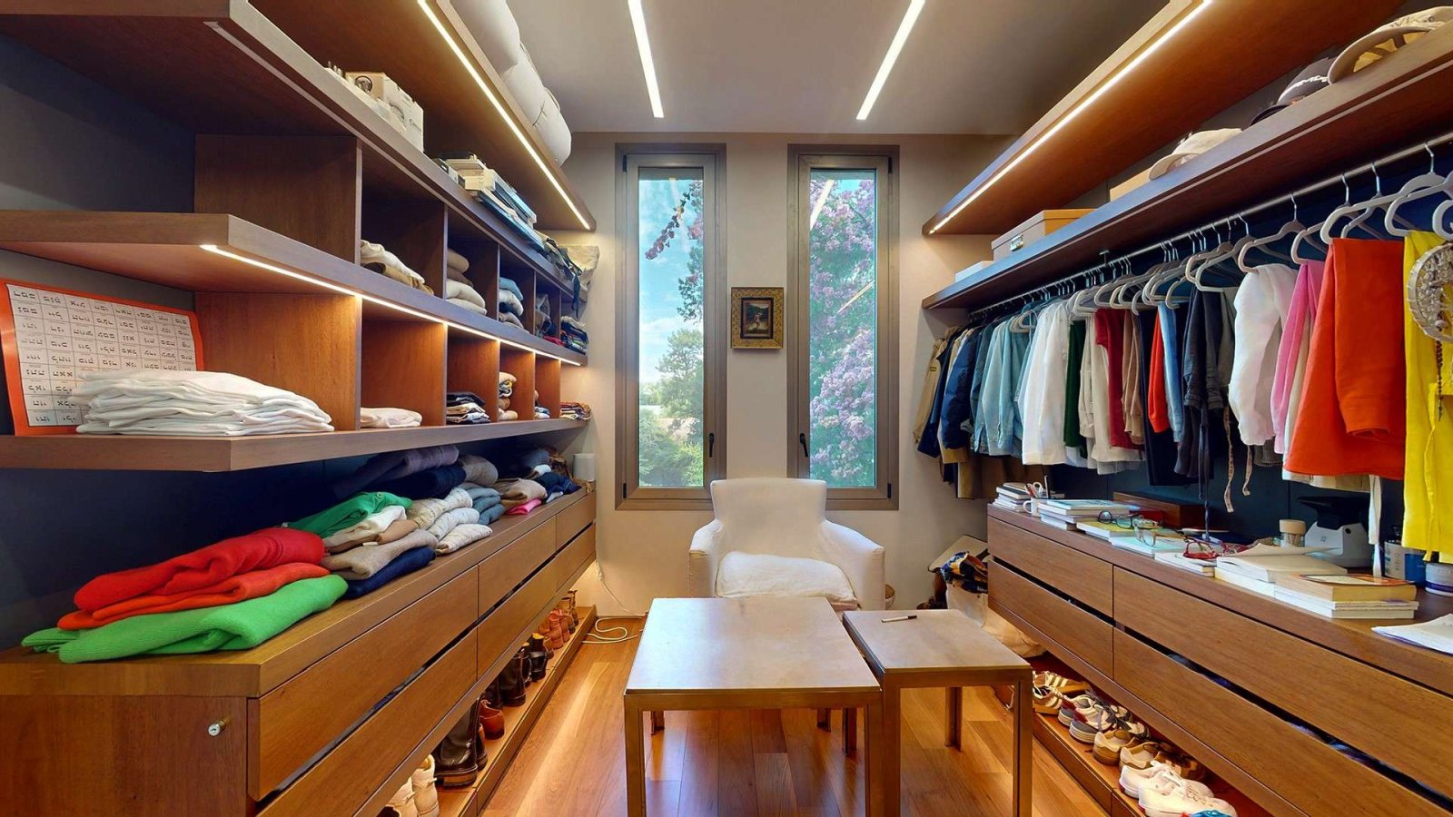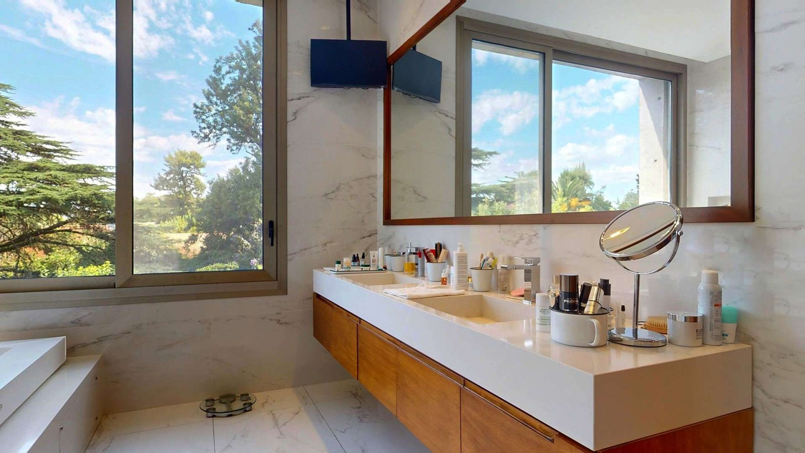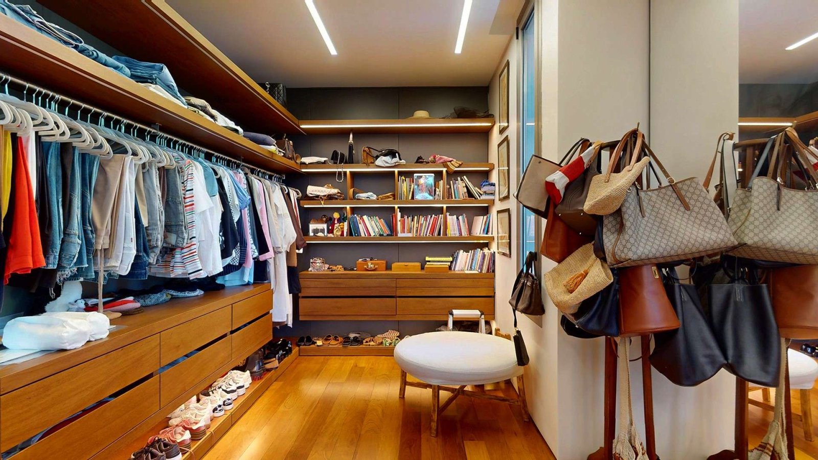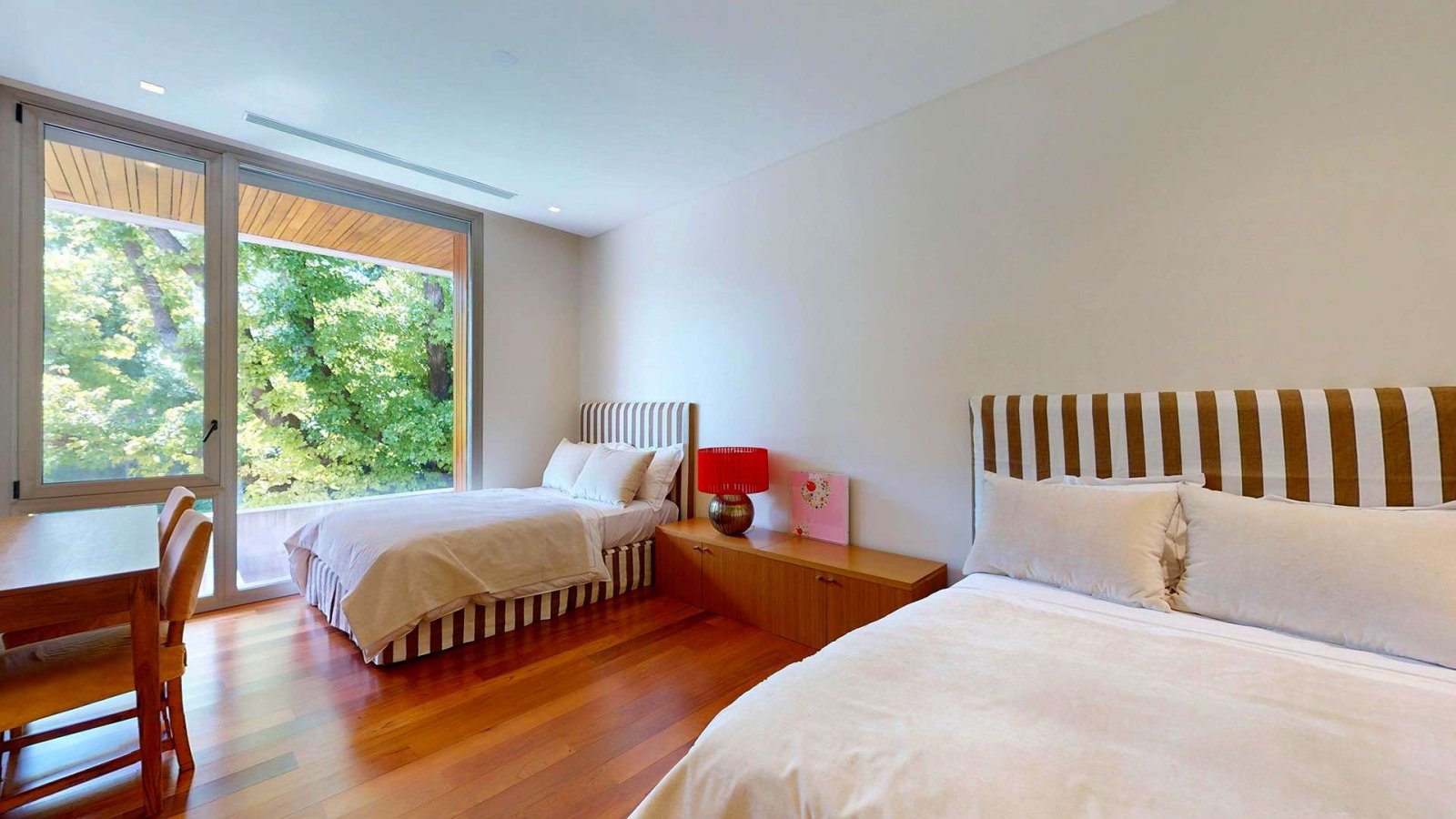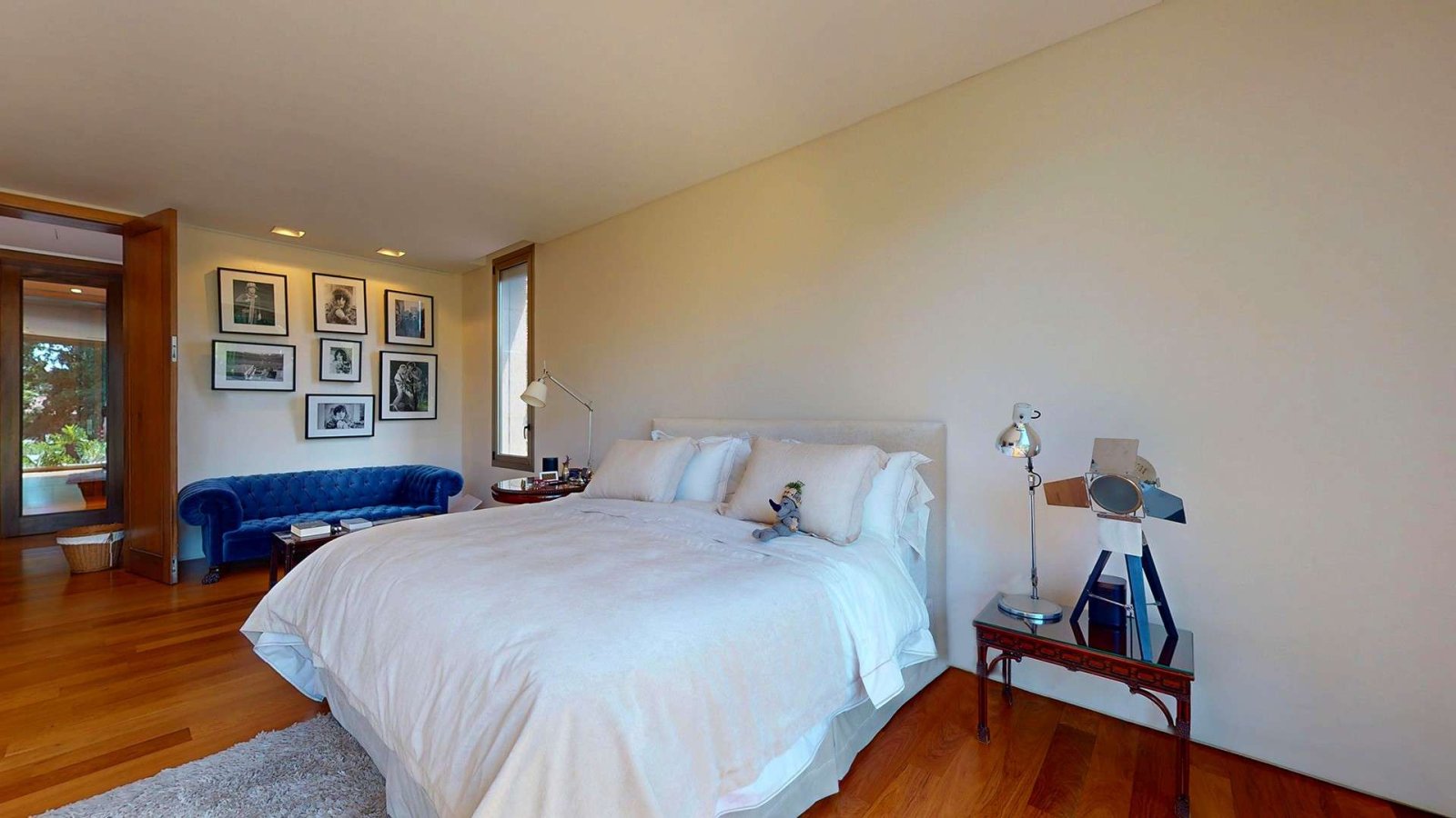 En la planta alta, un luminoso hall de distribución da acceso a la master suite, que se destaca por su privacidad y confort: acceso con clave y huella digital, espacio para escritorio, gran vestidor en madera y un baño compartimentado con doble bacha e hidromasaje. Desde el dormitorio se accede a un deck privado con vistas abiertas al jardín.