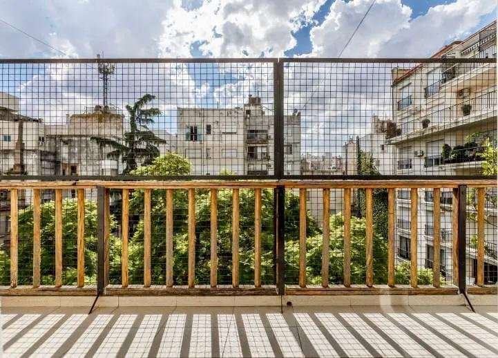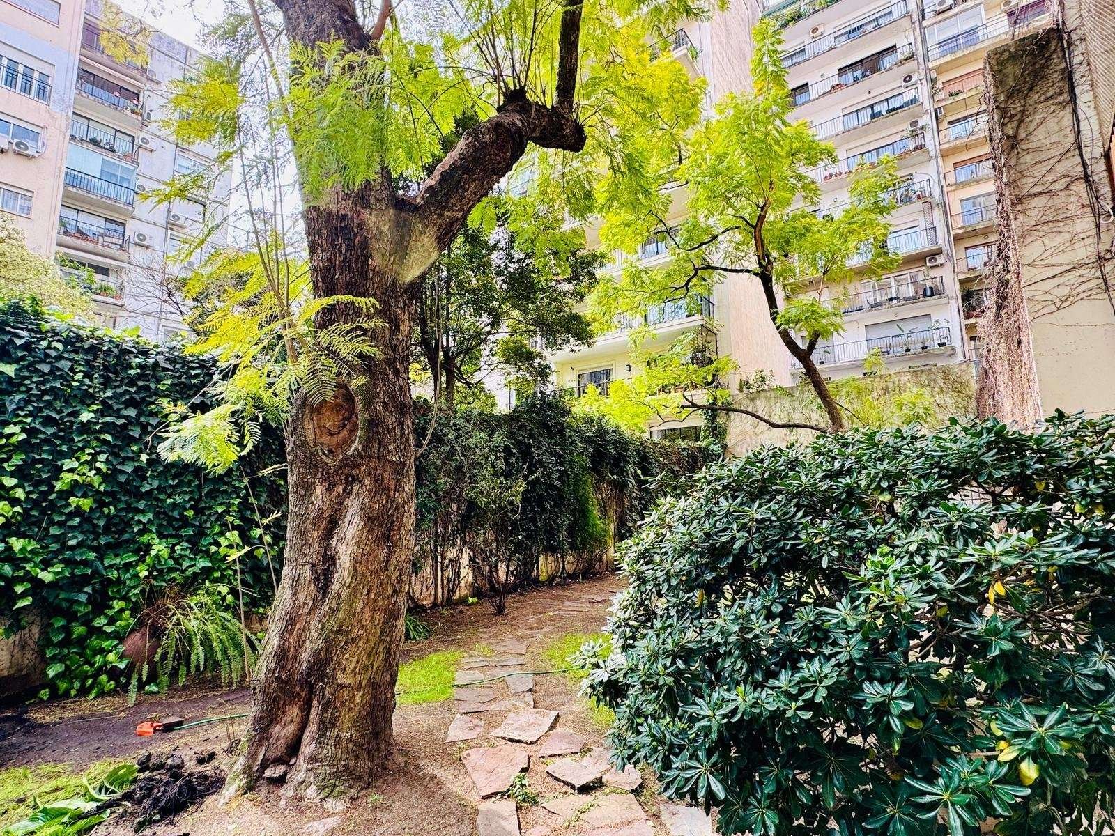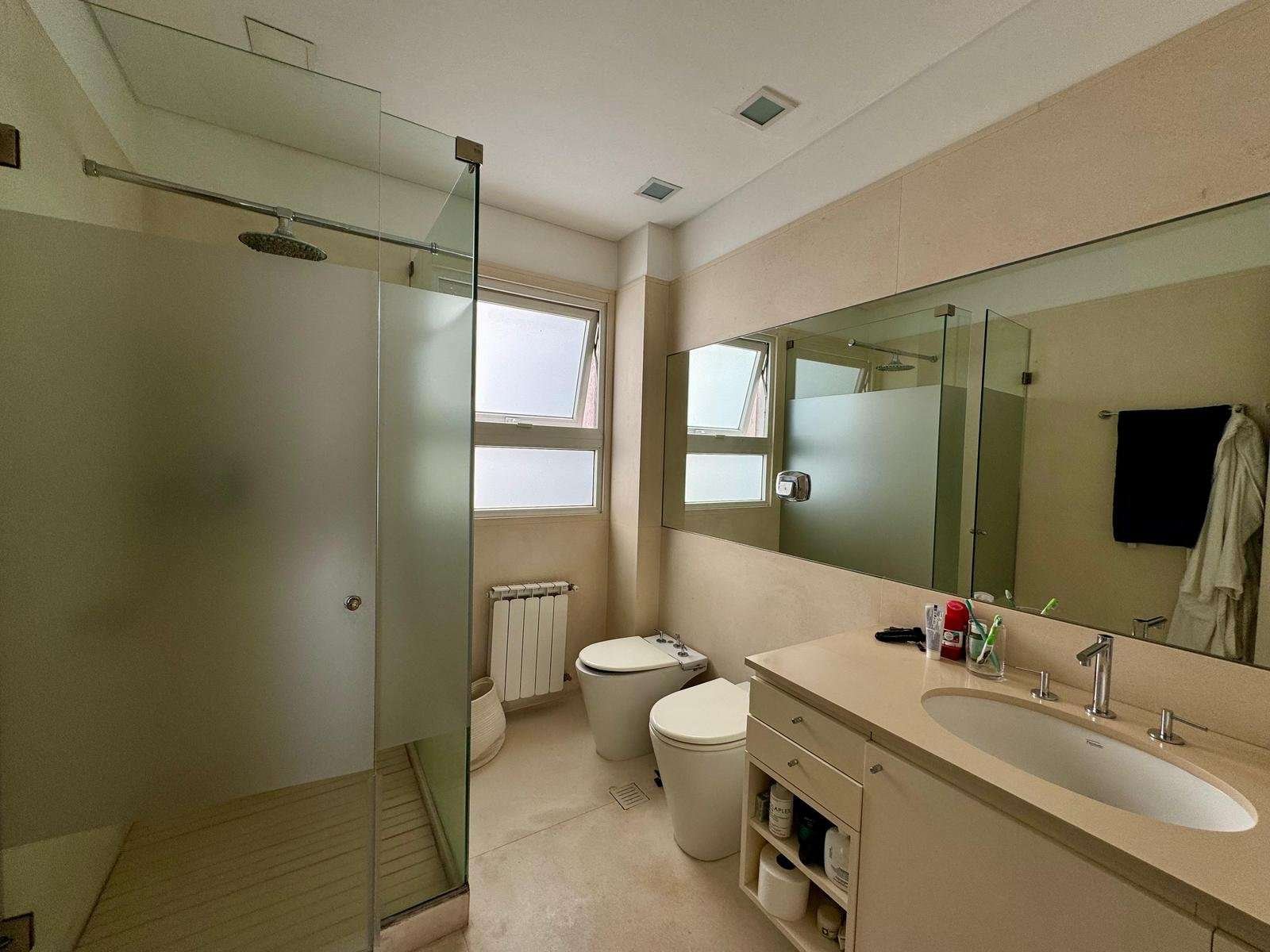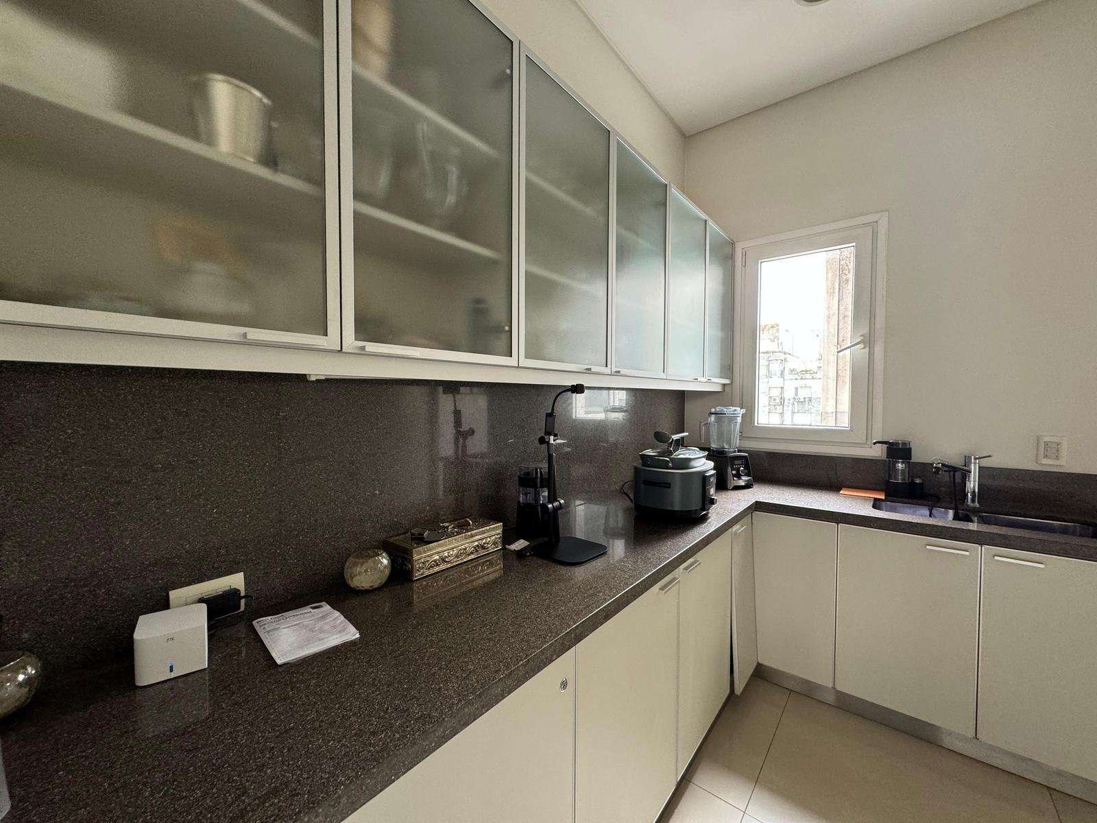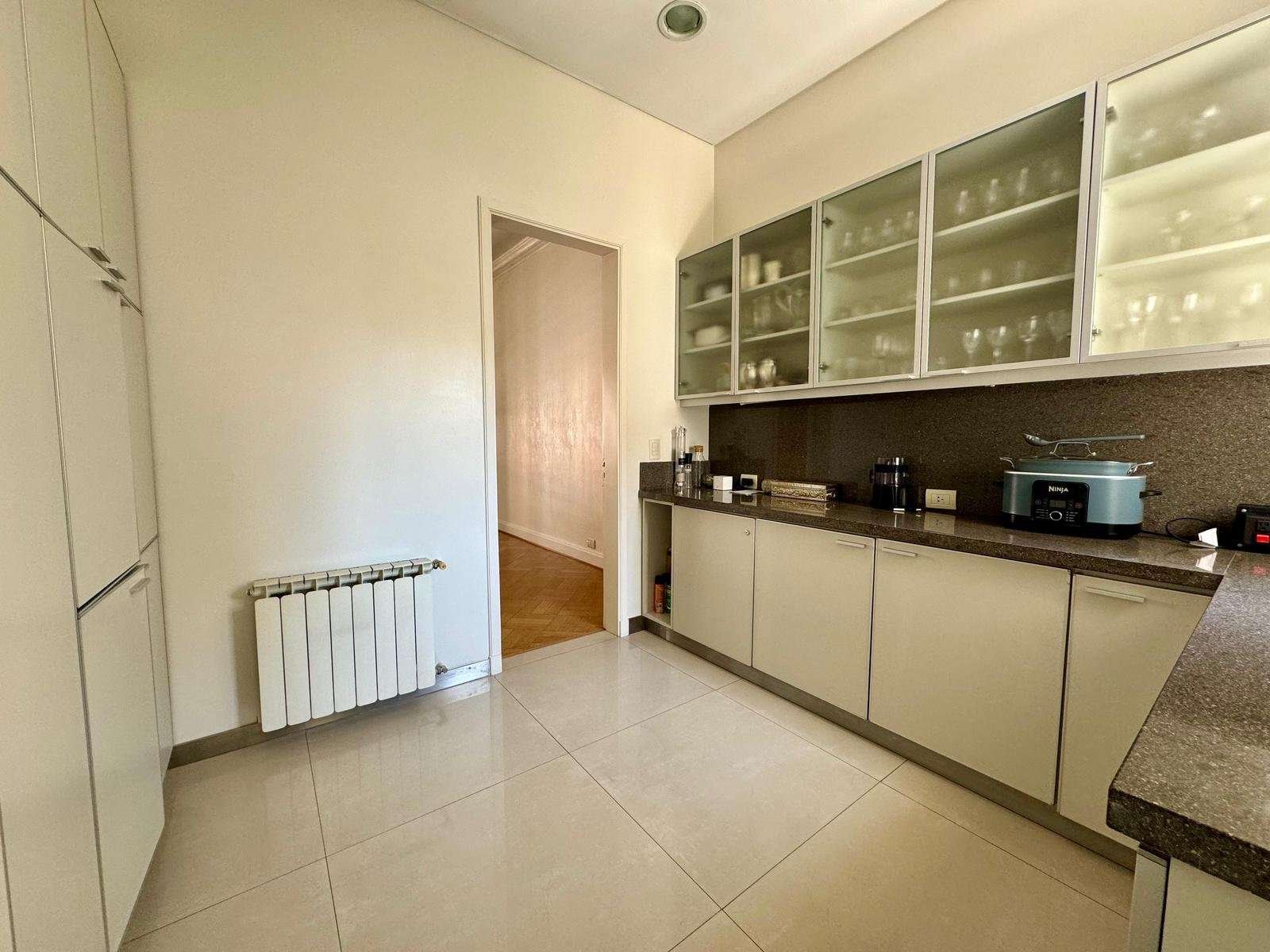 El departamento cuenta con cuatro dormitorios, dos de ellos en suite. La suite principal, de generosas dimensiones, incluye un vestidor y acceso a un balcón corrido que da al contrafrente, con vistas a un tranquilo pulmón de manzana. La cocina es amplia y funcional, con un comedor diario integrado. Además, dispone de un lavadero cubierto y baño de servicio.