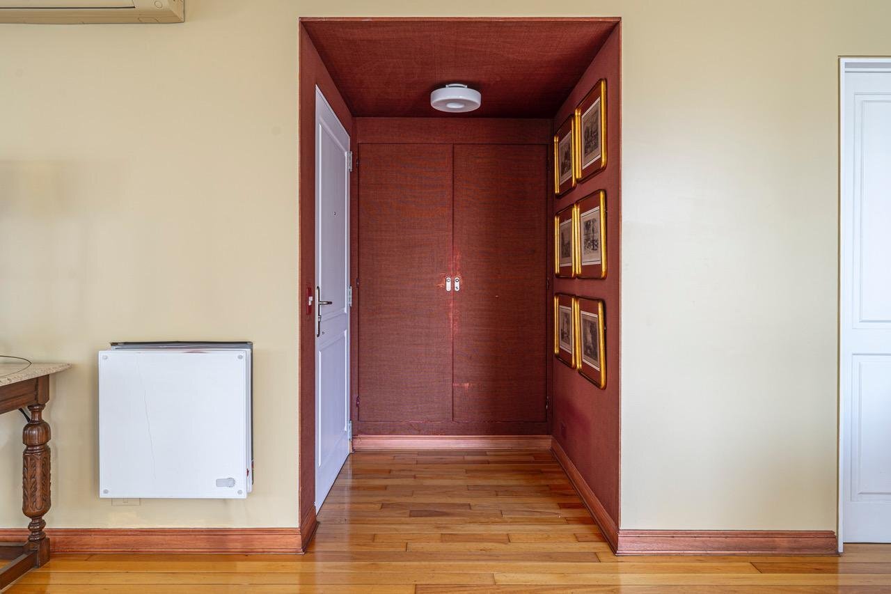Este espectacular departamento cuenta con palier privado, lo que asegura privacidad desde el primer momento. Al ingresar, nos recibe un hall de entrada que da paso a un amplio living comedor con ventanales apaisados, los cuales permiten que la luz natural inunde los espacios. Los pisos de madera brindan una calidez especial, y el placard de recepción añade funcionalidad.
