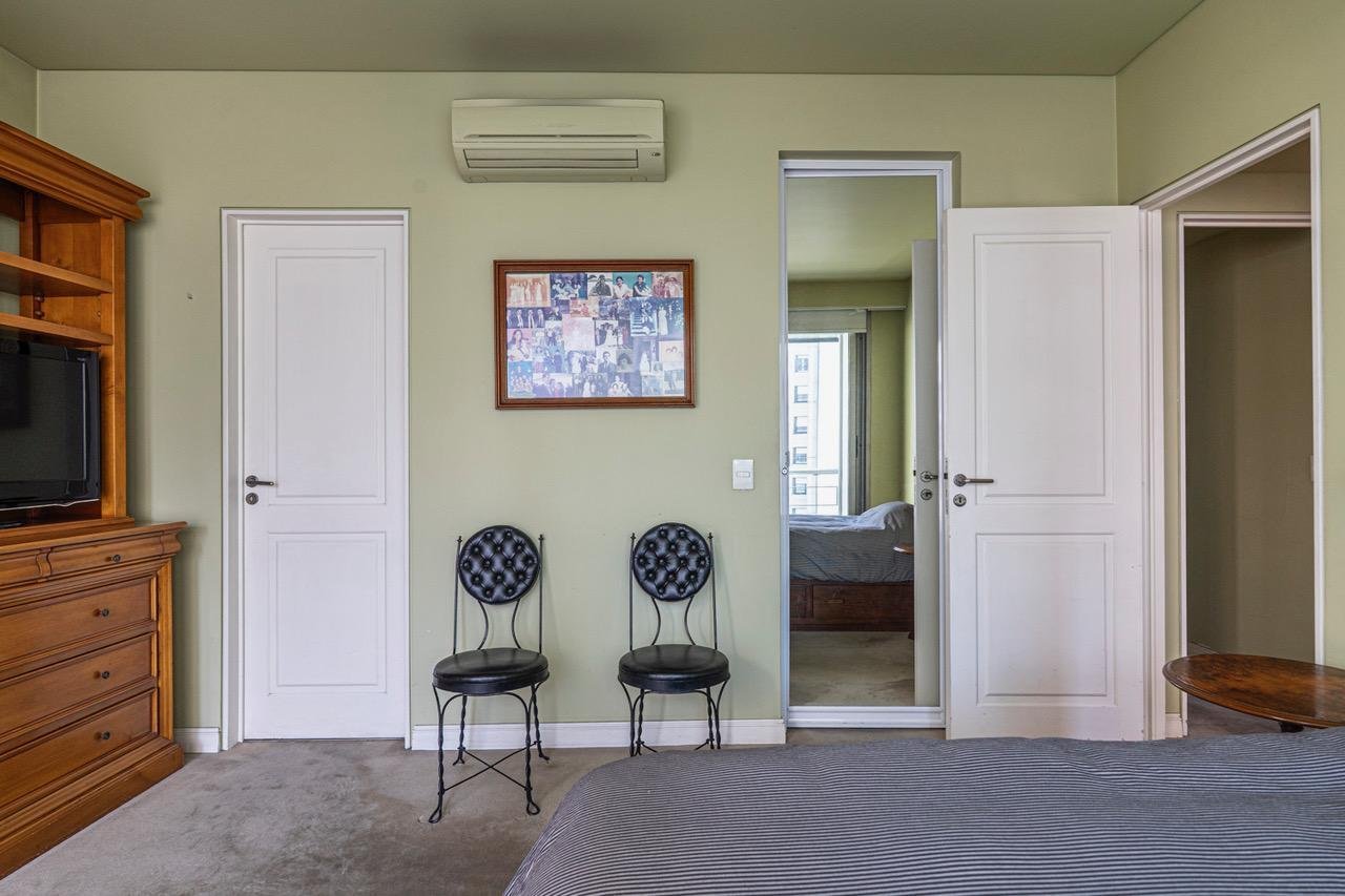 Dormitorio principal, con baño en suite, vestidor y acceso a un balcón privado. El piso de moquette en este ambiente le da un toque de confort.
