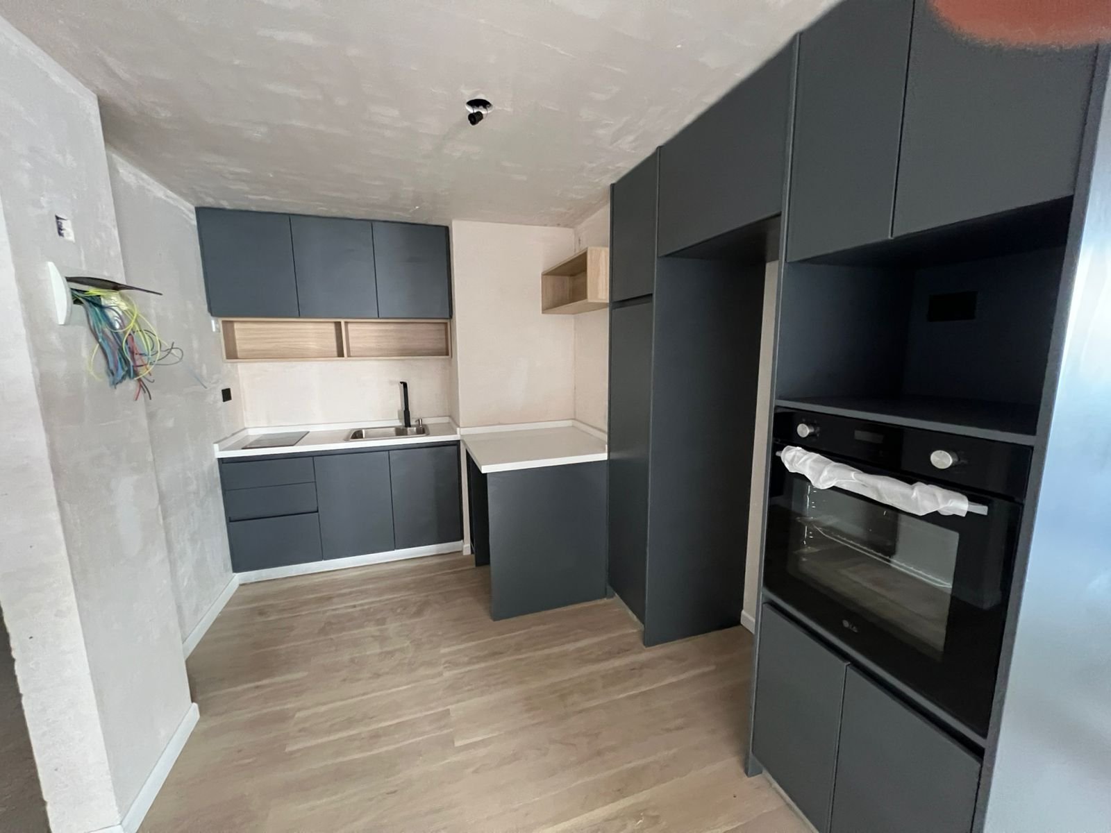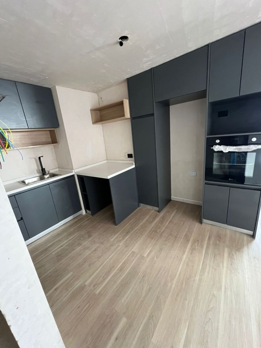 Las unidades están equipadas con cocinas eléctricas vitrocerámicas (2 hornallas en unidades estándar y 4 en penthouse), horno eléctrico individual, mesadas de granito negro Brasil o gris mara, bacha de acero inoxidable y grifería FV o similar. Los muebles de cocina ofrecen amplias alacenas, bajo mesada y espacio específico para almacenamiento de vinos.