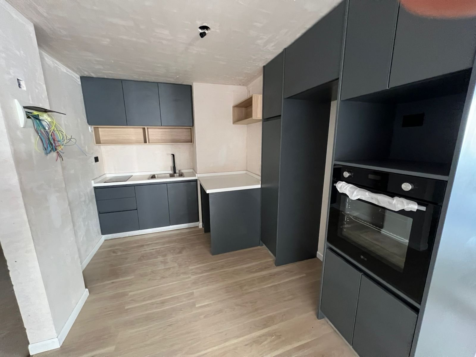 Las unidades están equipadas con cocinas eléctricas vitrocerámicas (2 hornallas en unidades estándar y 4 en penthouse), horno eléctrico individual, mesadas de granito negro Brasil o gris mara, bacha de acero inoxidable y grifería FV o similar. Los muebles de cocina ofrecen amplias alacenas, bajo mesada y espacio específico para almacenamiento de vinos.