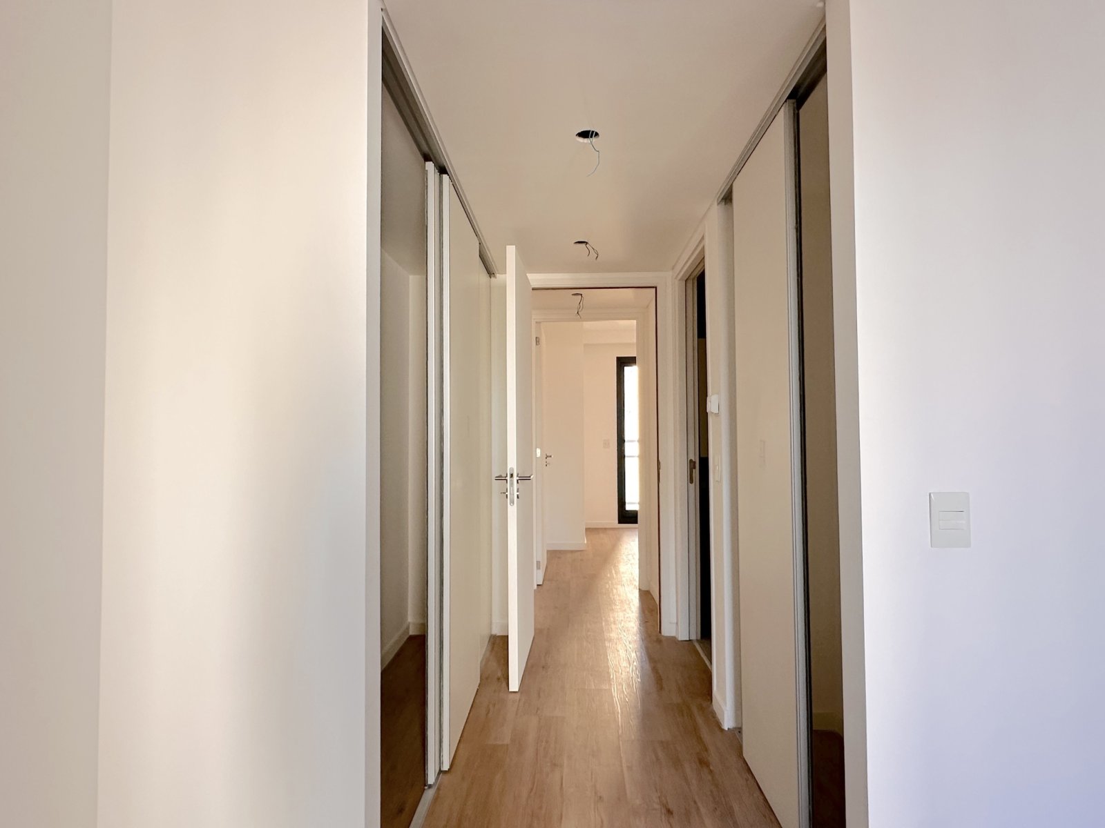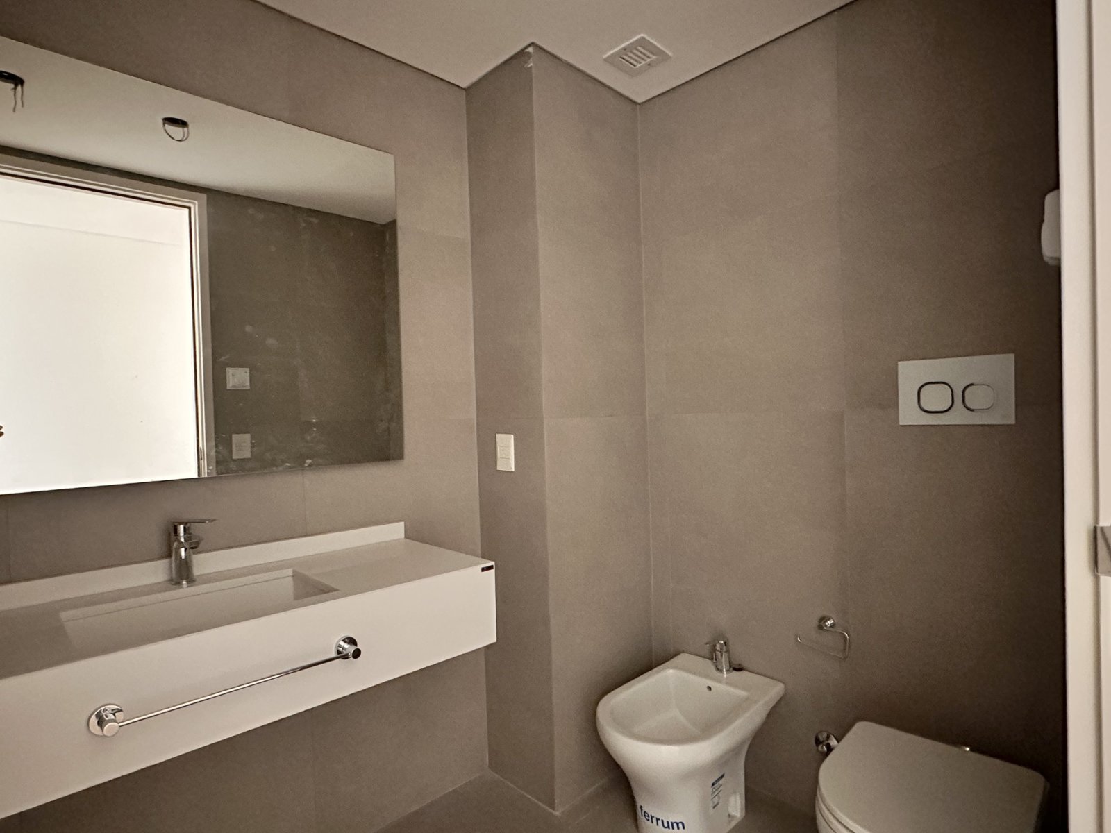 Ubicado en un moderno edificio de tan solo un año de antigüedad, esta propiedad se sitúa en una esquina estratégica y luminosa. Al ingresar, un amplio hall de recepción da paso a un generoso living-comedor con salida a un balcón terraza orientado al noroeste, con vistas abiertas al río y a la ciudad, y grandes ventanales que inundan el espacio de luz natural. La unidad cuenta con toilette de recepción.