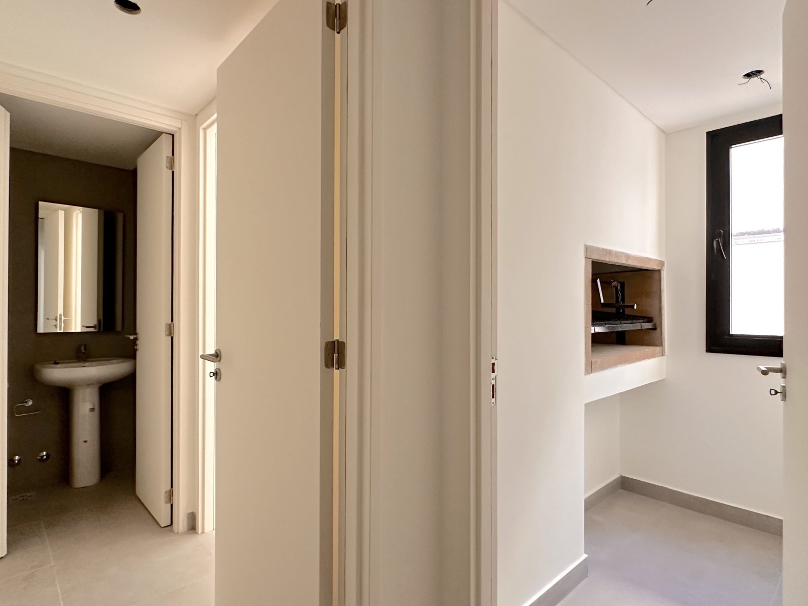 El área privada dispone de tres dormitorios el principal suite con vestidor. La cocina, amplia y funcional, incorpora comedor diario y está equipada para lavavajillas. A ello se suma un lavadero independiente con excelente capacidad de guardado, dependencia de servicio con su baño completo, y una parrilla interna con ventilación natural.