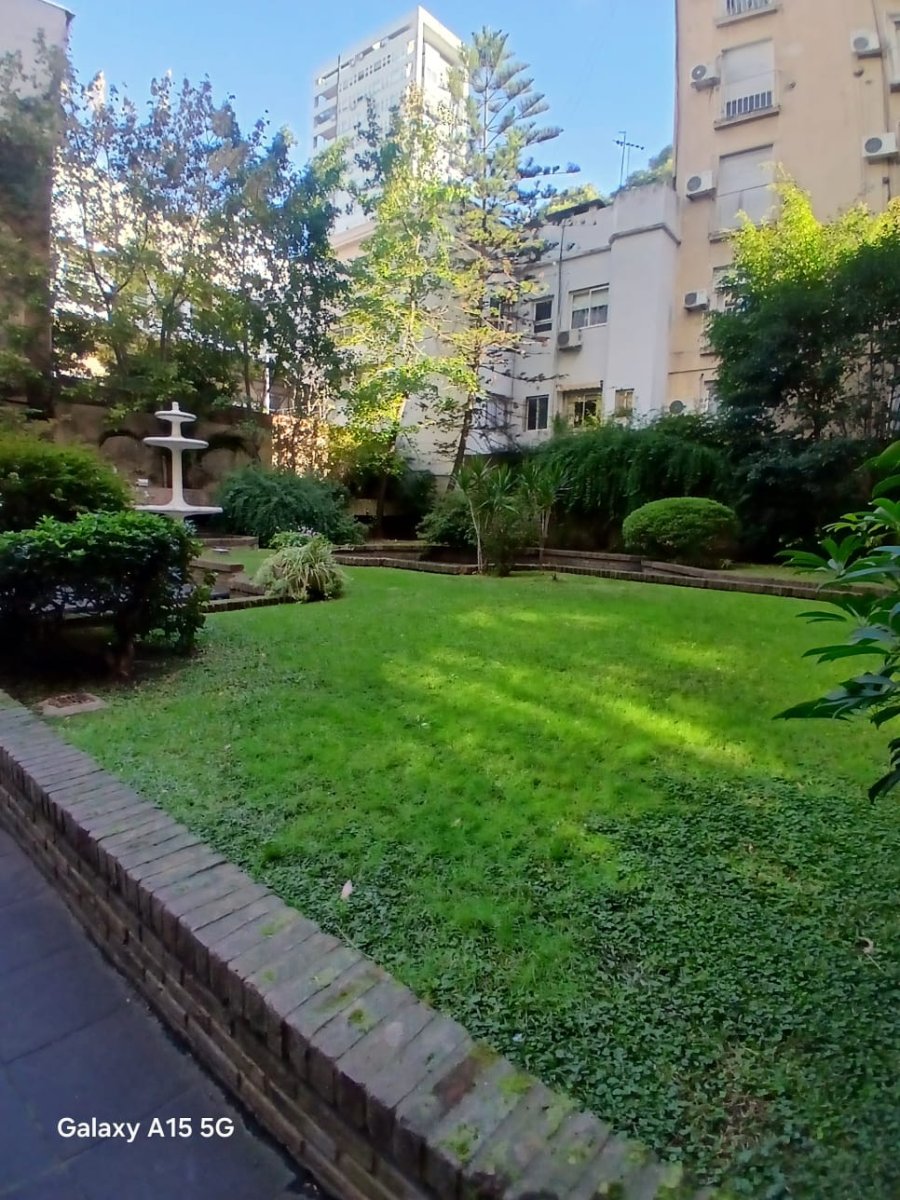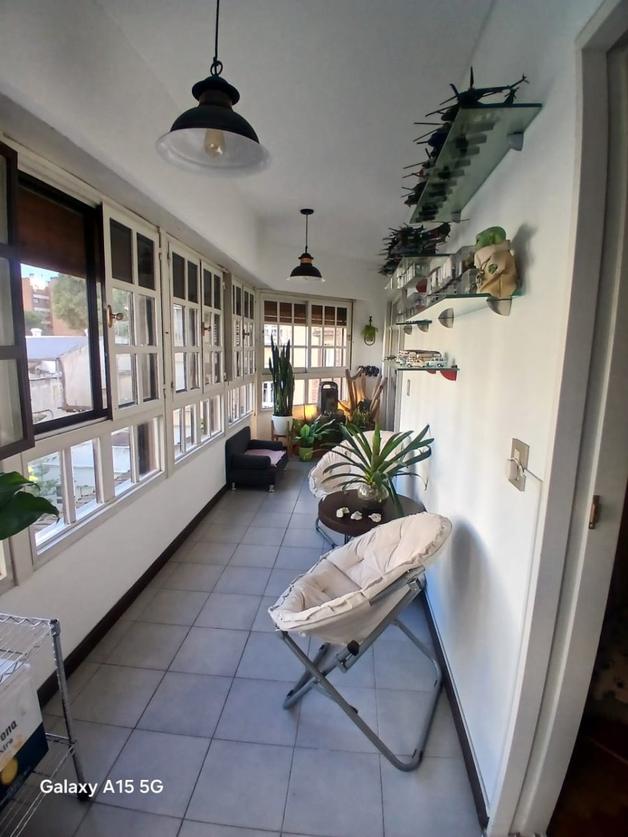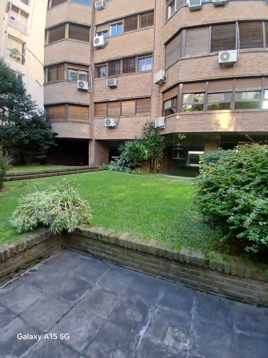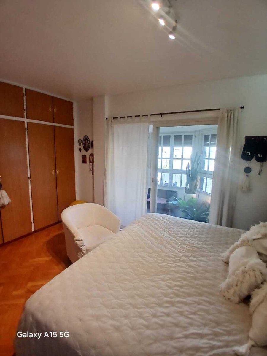 La propiedad cuenta con tres amplios dormitorios en suite, todos con excelente luz natural y generosos placares. Además, dispone de un escritorio independiente, ideal para home office o espacio de estudio. El área social se compone de un elegante living-comedor con pisos de parquet y salida a balcón con vista abierta al pulmón de manzana, lo que asegura silencio y luminosidad.