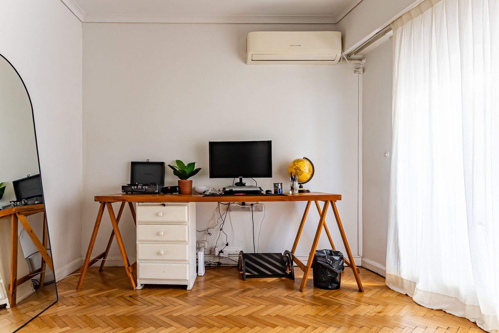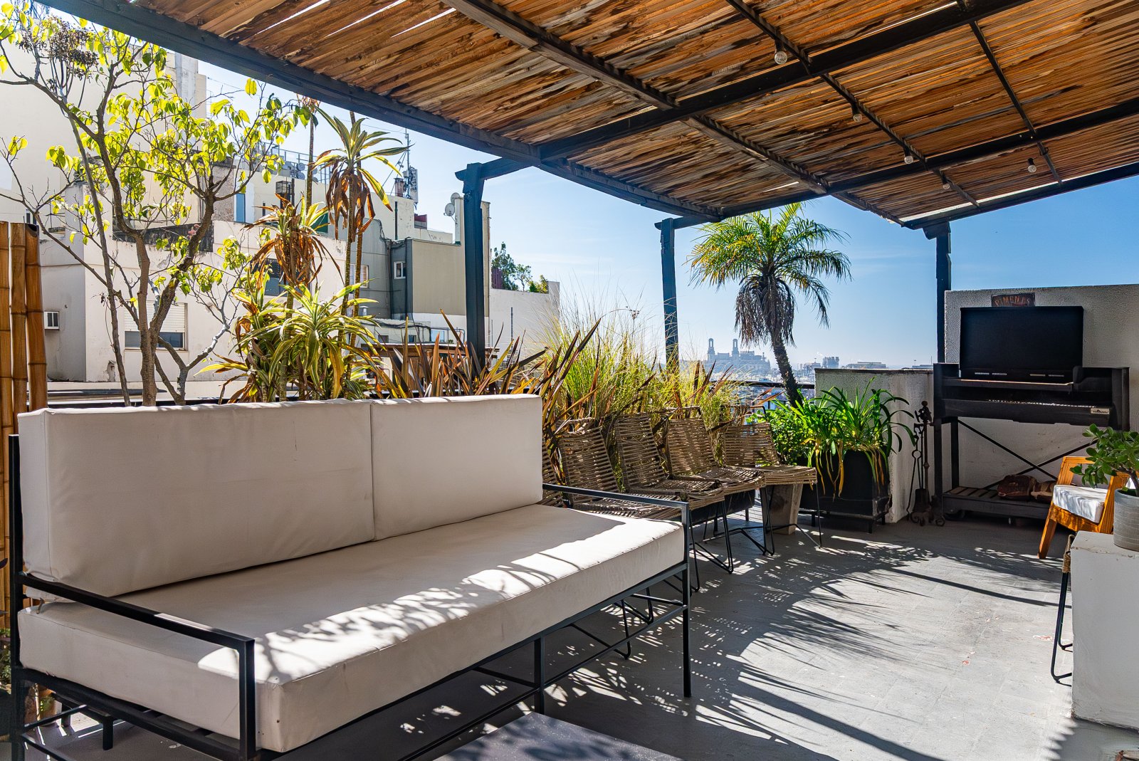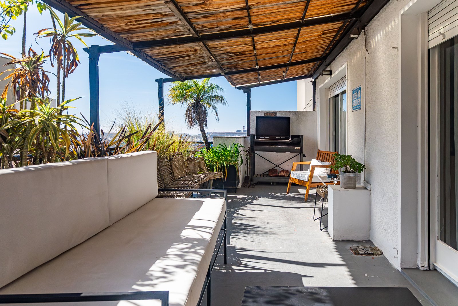 Excelente departamento con terraza de 30 m² con vista al río. Cuenta con 3 ambientes, incluyendo un living comedor que se conecta al balcón terraza. El dormitorio principal, de 4x5 metros, dispone de un amplio placard reciclado a nuevo. La cocina en forma de L está en perfectas condiciones. Además, posee un estudio con baño completo, que se puede convertir en un segundo dormitorio. Hogar a leña.