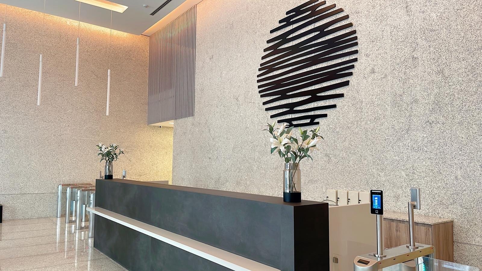 El hall de acceso impacta desde el ingreso, con una altura de 6 metros y detalles que transmiten categoría. Todo el proyecto fue concebido bajo criterios de sustentabilidad y eficiencia energética, pensado para acompañar las dinámicas actuales del trabajo, la sociabilidad y el bienestar en un mismo espacio.