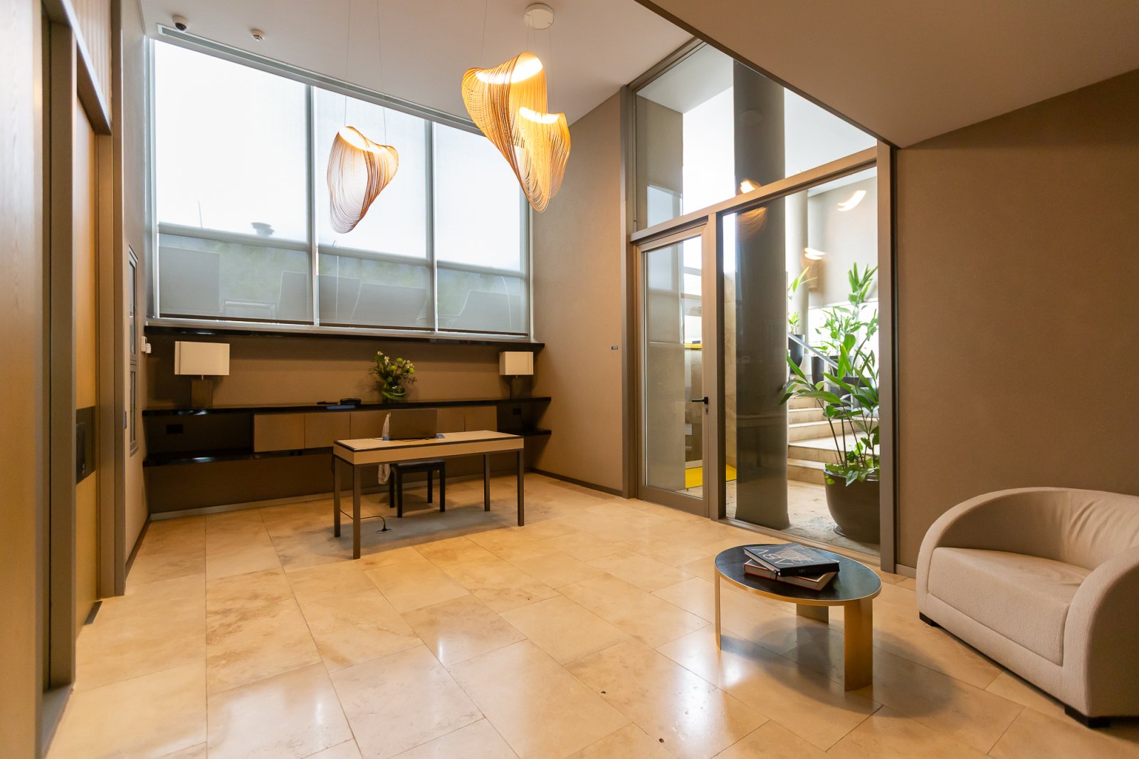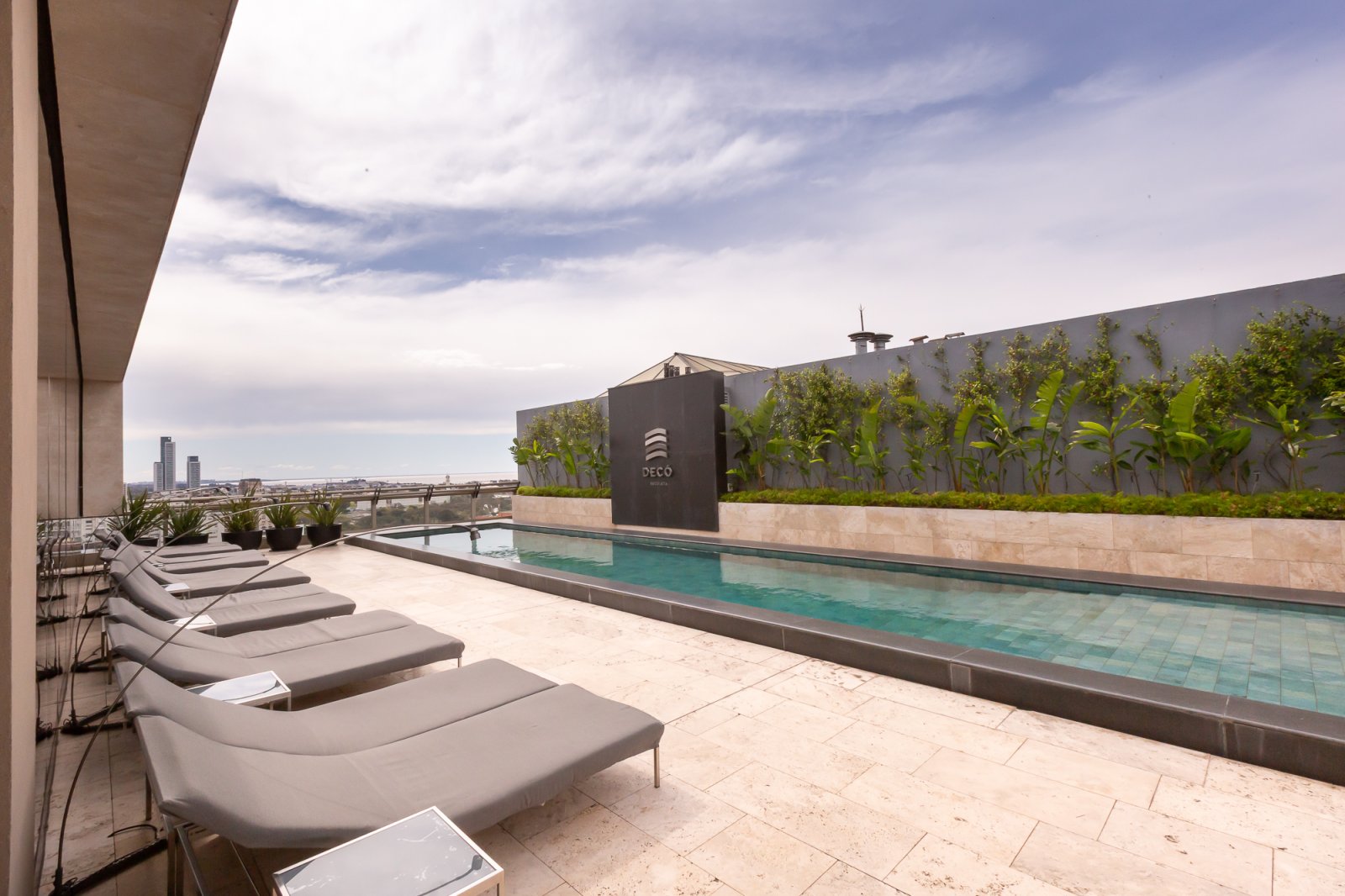 El edificio ofrece amenities de primer nivel: piscina en terraza con vista abierta, piscina interior climatizada, sauna, sala de masajes, gimnasio, SUM, sala de cine, además de baños de recepción en PB, terraza y vestuarios.
