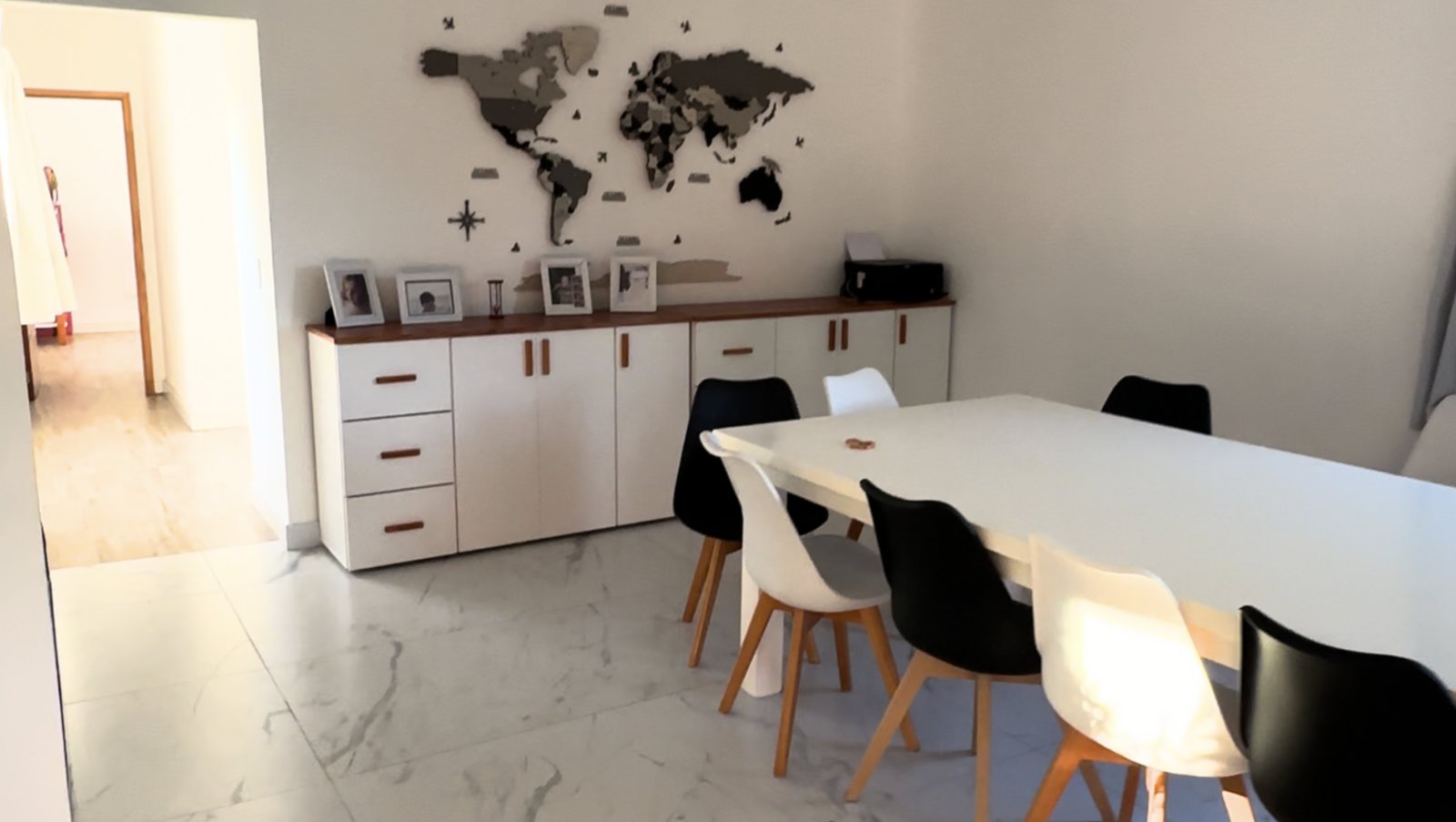 Amplio living con ventanales que llenan de luz natural los ambientes, comedor con espacio para recibir cómodamente, y cocina con desayunador para seis personas.