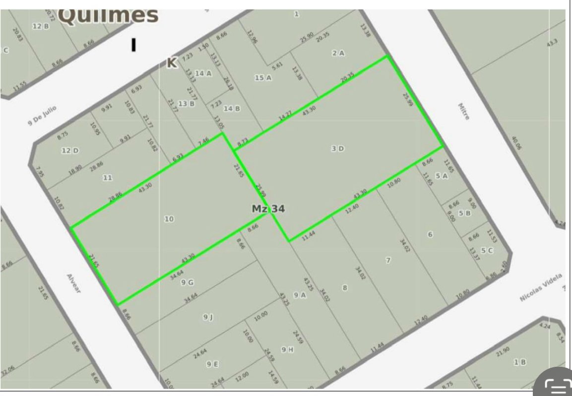 Dirección: Av. Mitre 467, QuilmesSuperficie total de terreno: 2.063 m²Superficie edificada: 4.054 m²Parcelas: 3D (1.125 m²) + 10 (938 m²)Zonificación urbana consolidadaAlta exposición y conectividadUna ubicación privilegiada, con todo el potencial para crear un proyecto distintivo en el corazón de Quilmes.