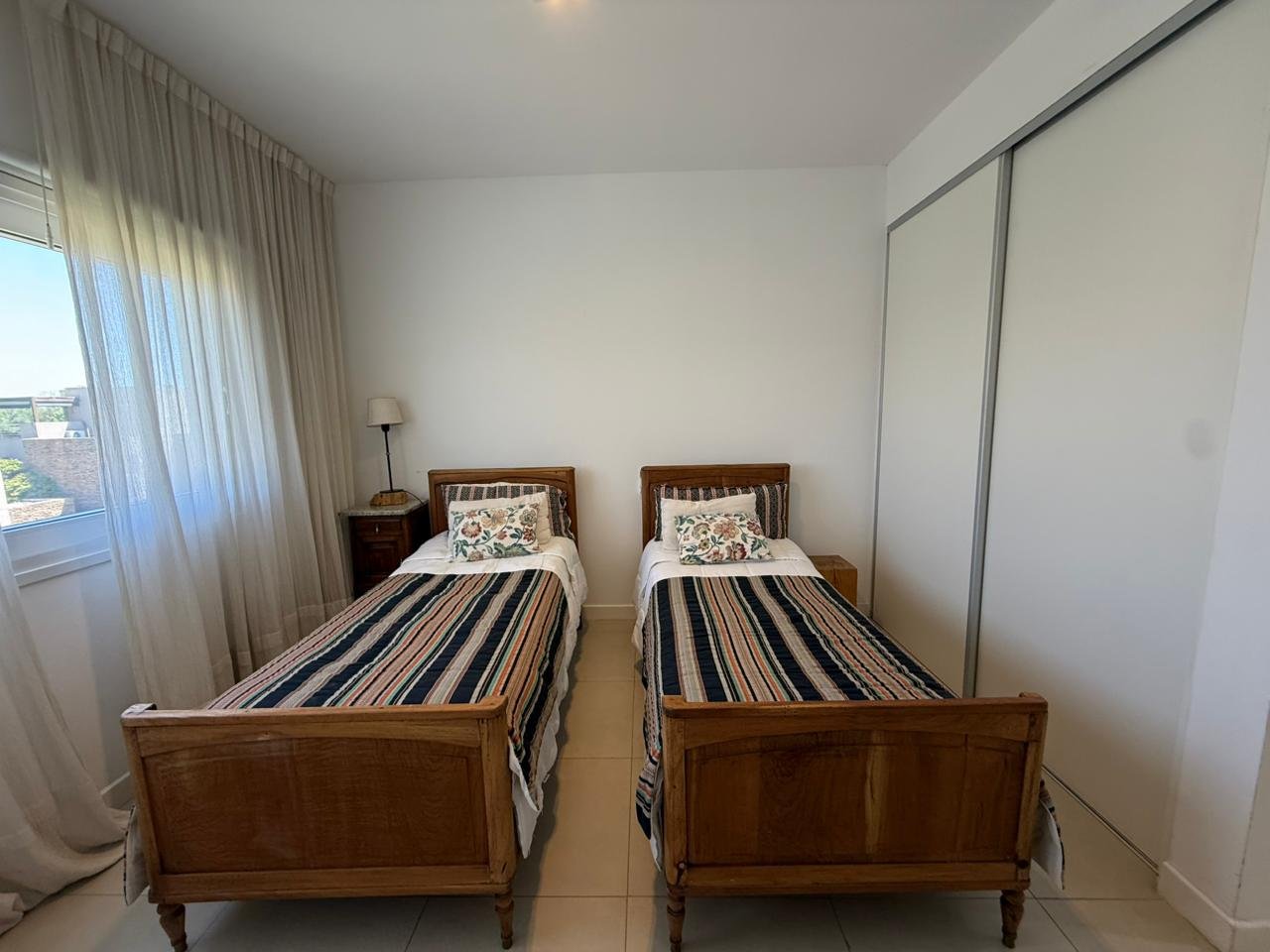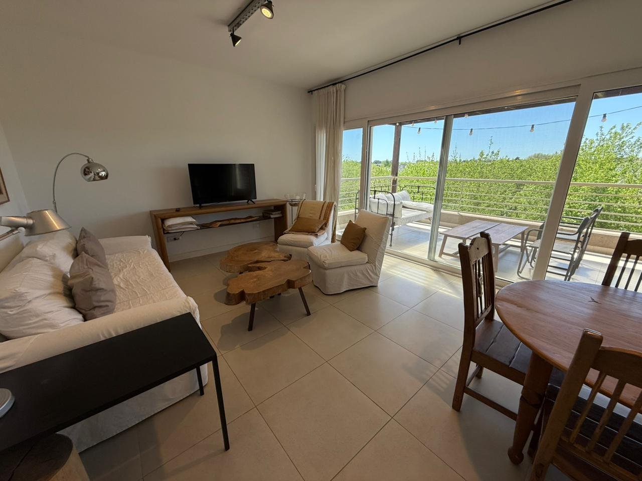 La propiedad cuenta con 2 dormitorios en suite, uno de ellos con vestidor, y un total de 3 baños finamente equipados. El living-comedor amplio y luminoso se conecta con un balcón terraza, ideal para disfrutar del entorno verde característico de Pilará.