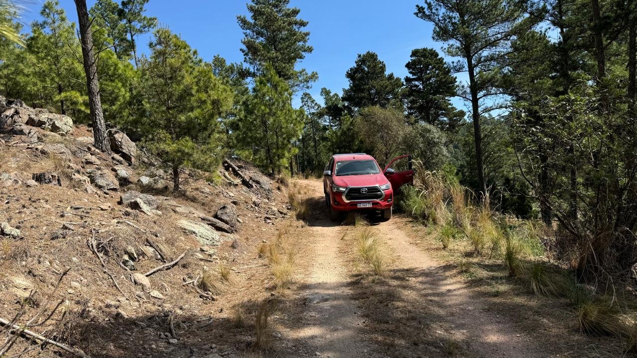 Son 850 hectáreas, 700 con título y 150 con posesión. Caminos de montaña, pinos, tres ríos (dos que hacen de límite natural y otro que atraviesa el campo). Ingreso por Ruta 14.