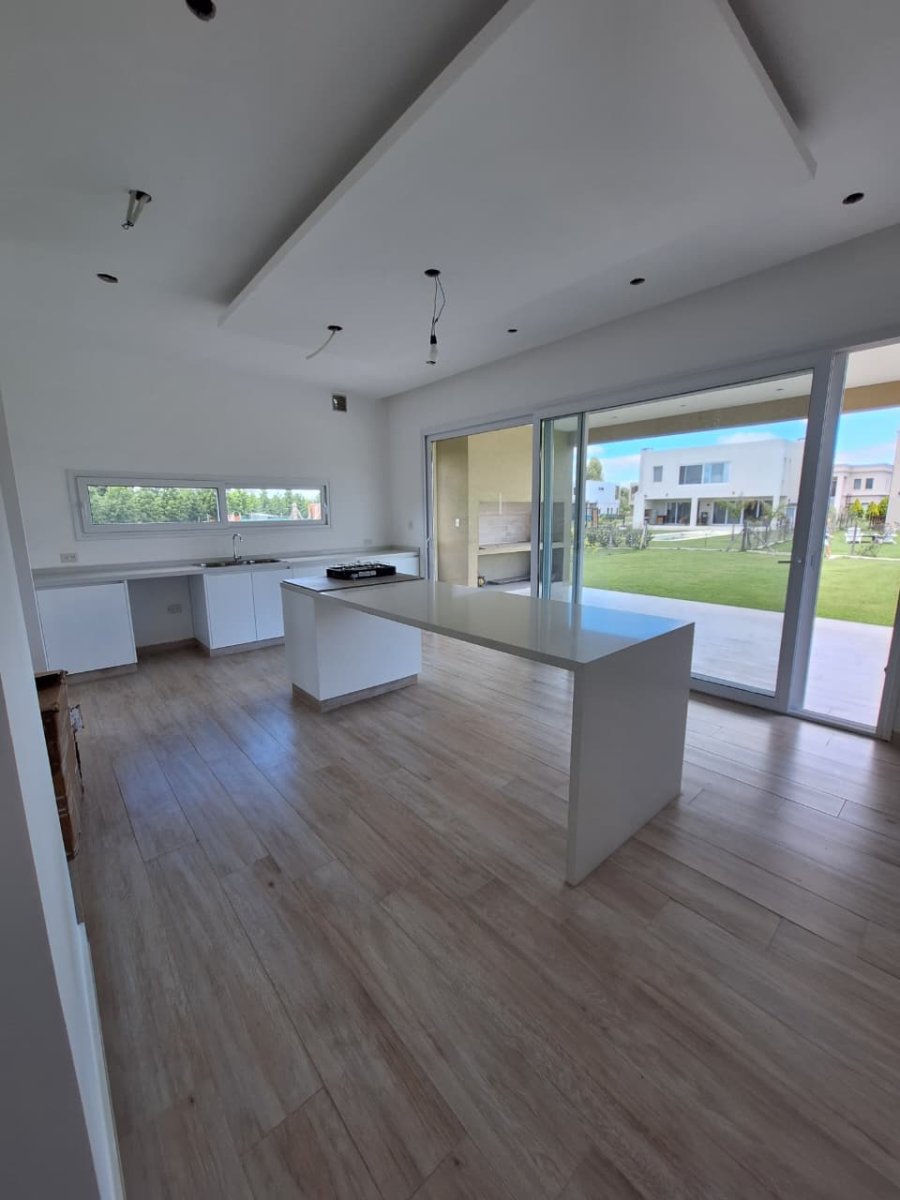 En planta baja, un elegante living-comedor de amplias dimensiones se integra con una cocina moderna con isla y vistas directas al jardín. Cuenta además con lavadero independiente con entrada de servicio y un dormitorio con baño completo, ideal para huéspedes o usos múltiples.