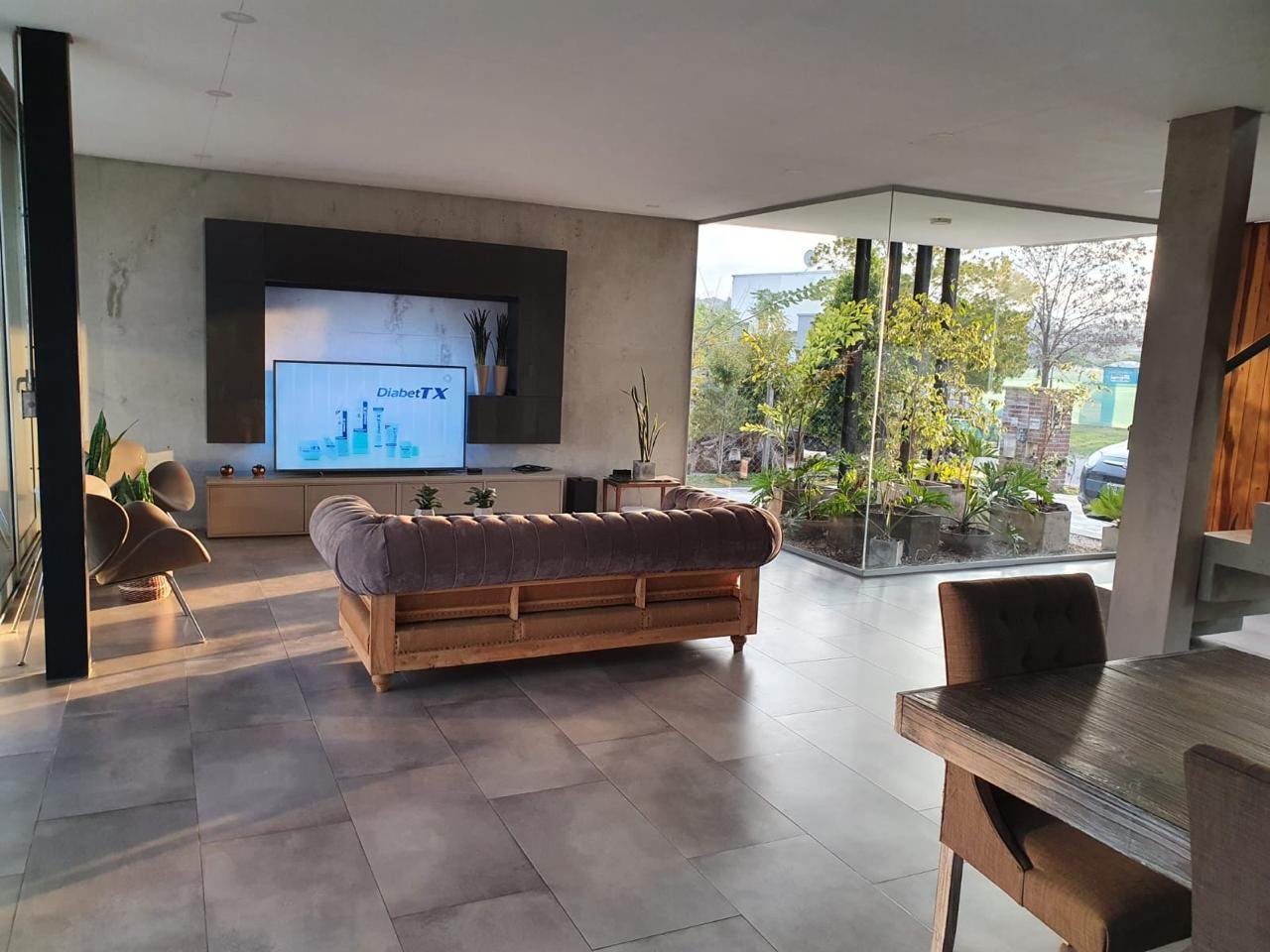 Amplio living-comedor con grandes ventanales y vista directa a la laguna.