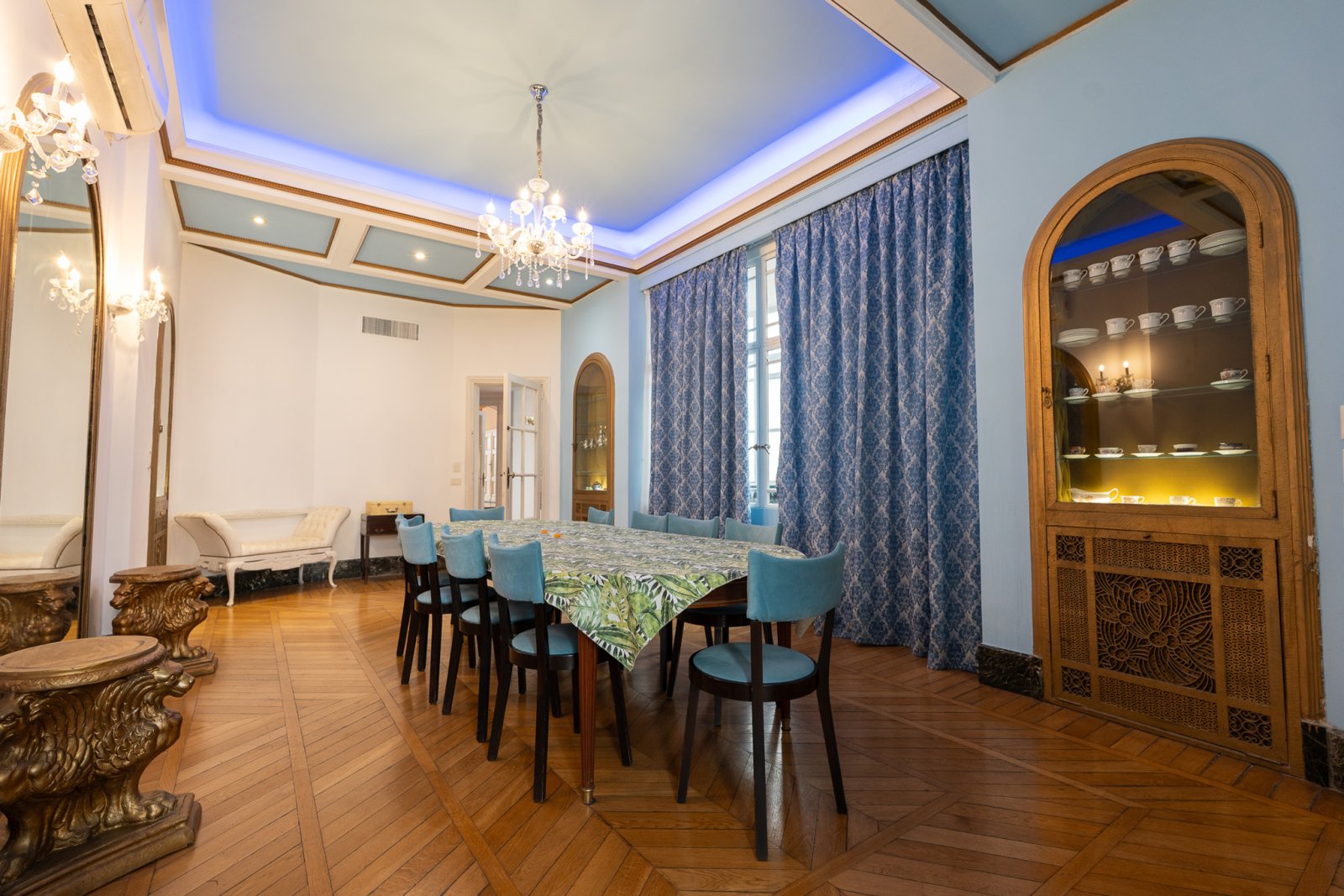 Se integra a un comedor formal de dimensiones generosas y estética refinada, evocando la atmósfera de un auténtico palacio urbano.