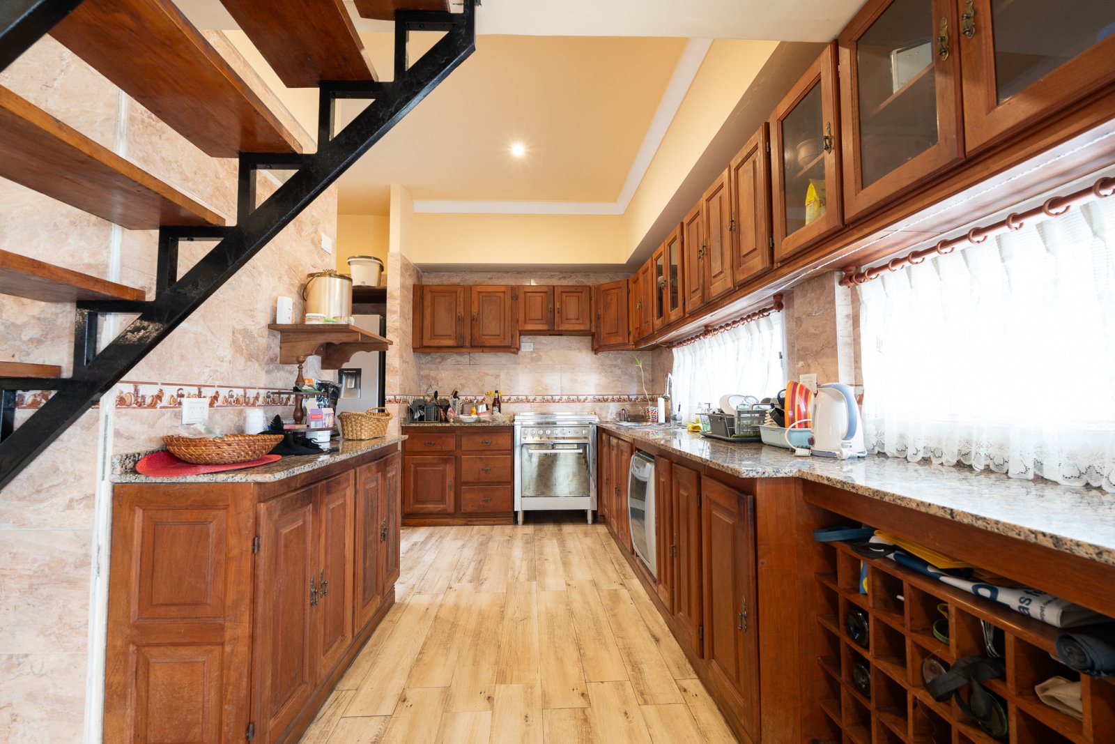 La cocina comedor, luminosa y equipada, se conecta a un ascensor de servicio que comunica los distintos pisos.