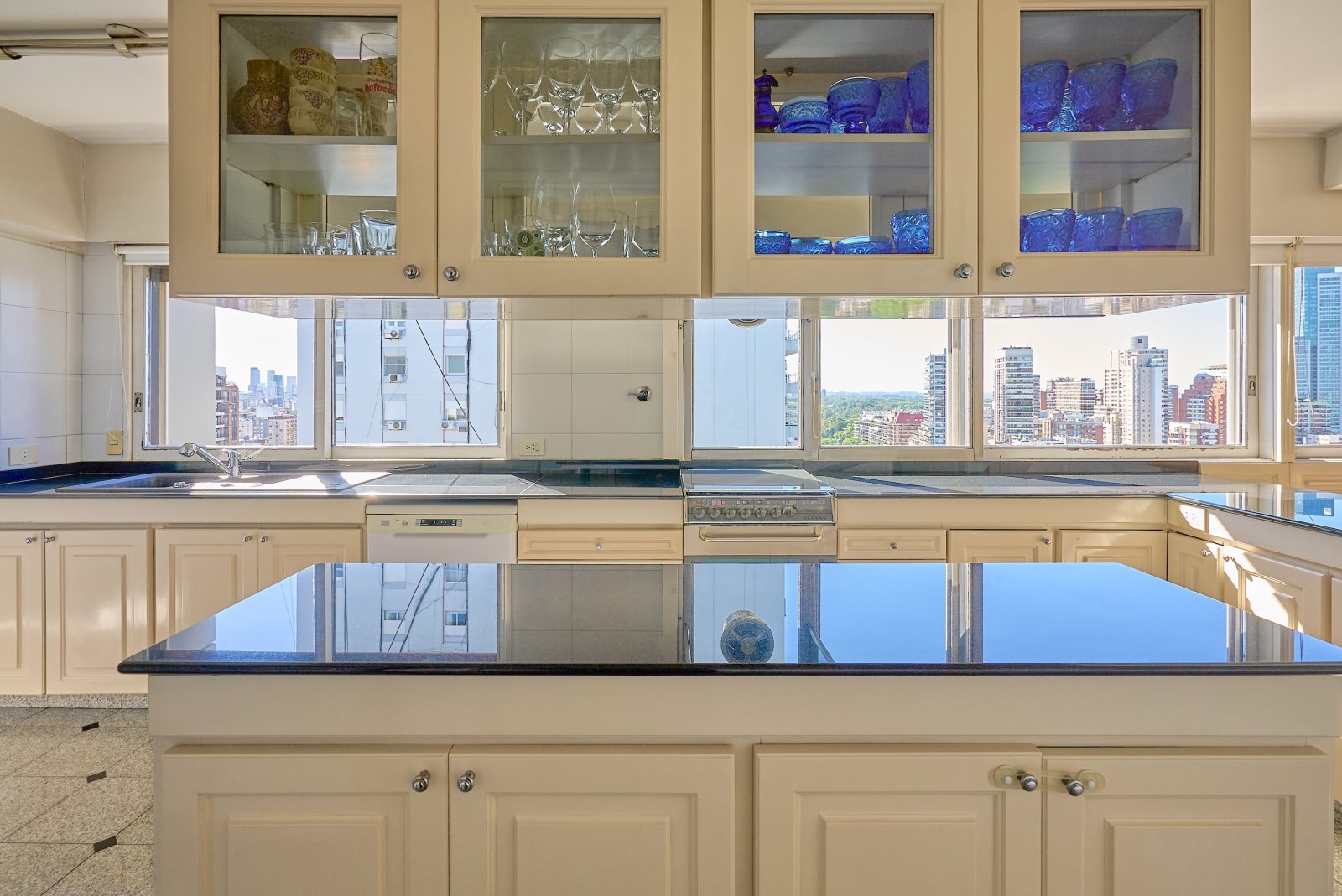 Luego la cocina muy grande con isla cuenta con comedor diario familiar, muy luminosa y con vistas a la ciudad, con lugar para lavavajillas. lavadero independiente grande, y despensa.