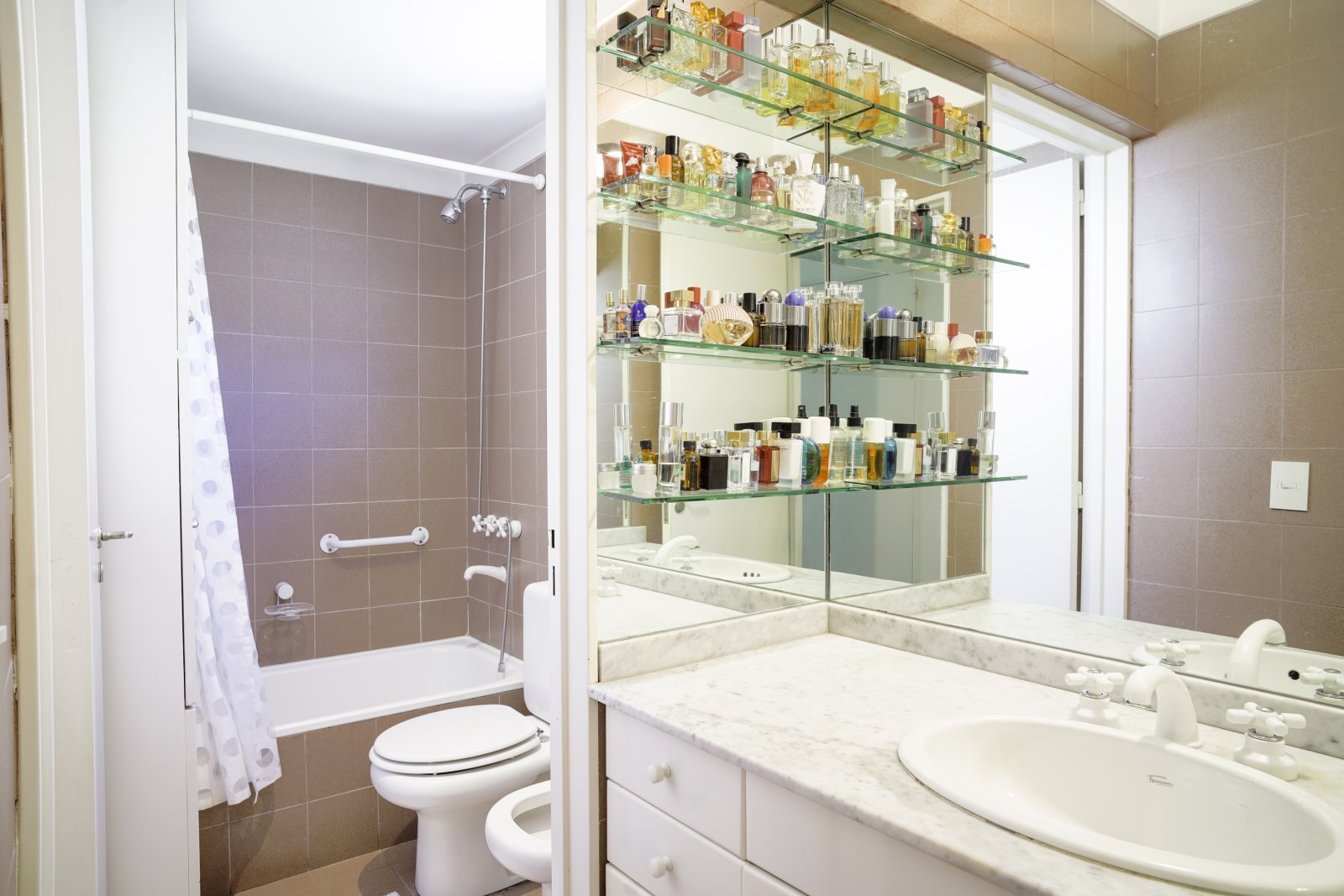 Tiene 2 dormitorios en suite cada uno con su baño completo, el principal con baño compartimentado y con salida al balcón al frente.