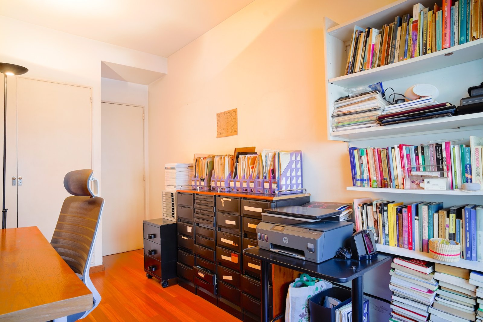 El segundo dormitorio también con salida a balcón a contrafrente abierto. Actualmente lo tienen de escritorio.
