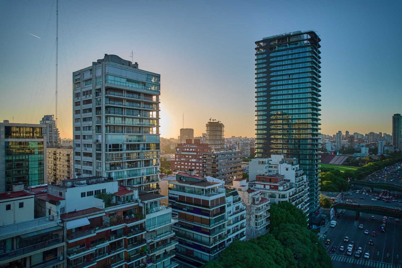 Conjunto de 3 edificios proyectado por el Estudio Mario Roberto Álvarez, frente a los bosque de Palermo. Piso 12 totalmente reciclado en éste edificio icónico.