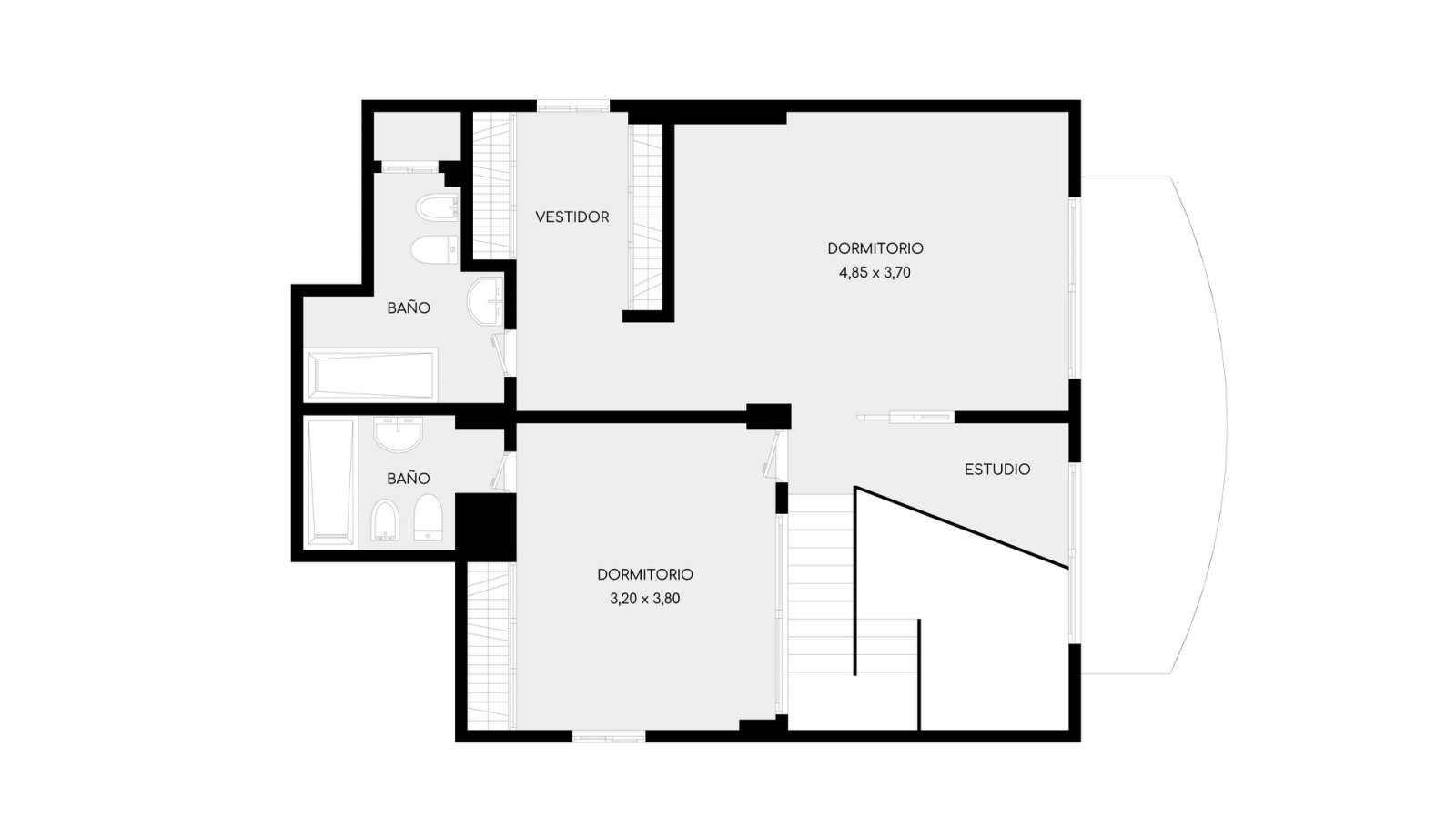 En la planta superior se desarrolla el área privada, compuesta por dos dormitorios en suite, ambos de generosas dimensiones, con excelentes placards y baños completos que priorizan el confort y la privacidad.