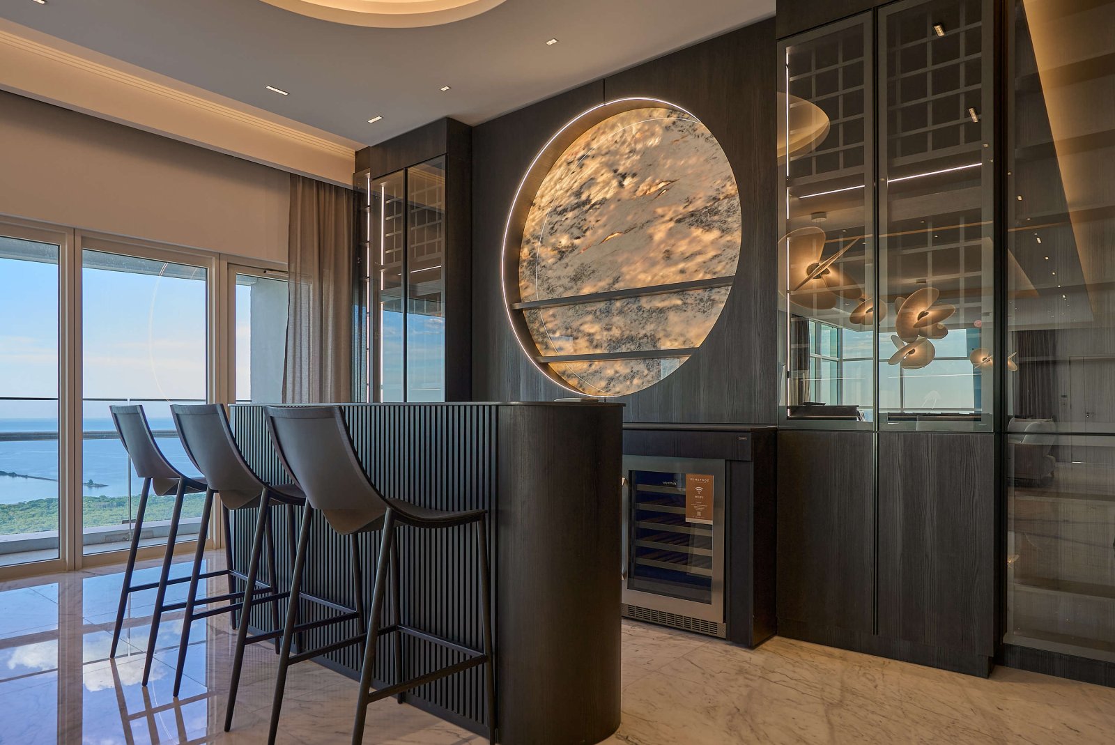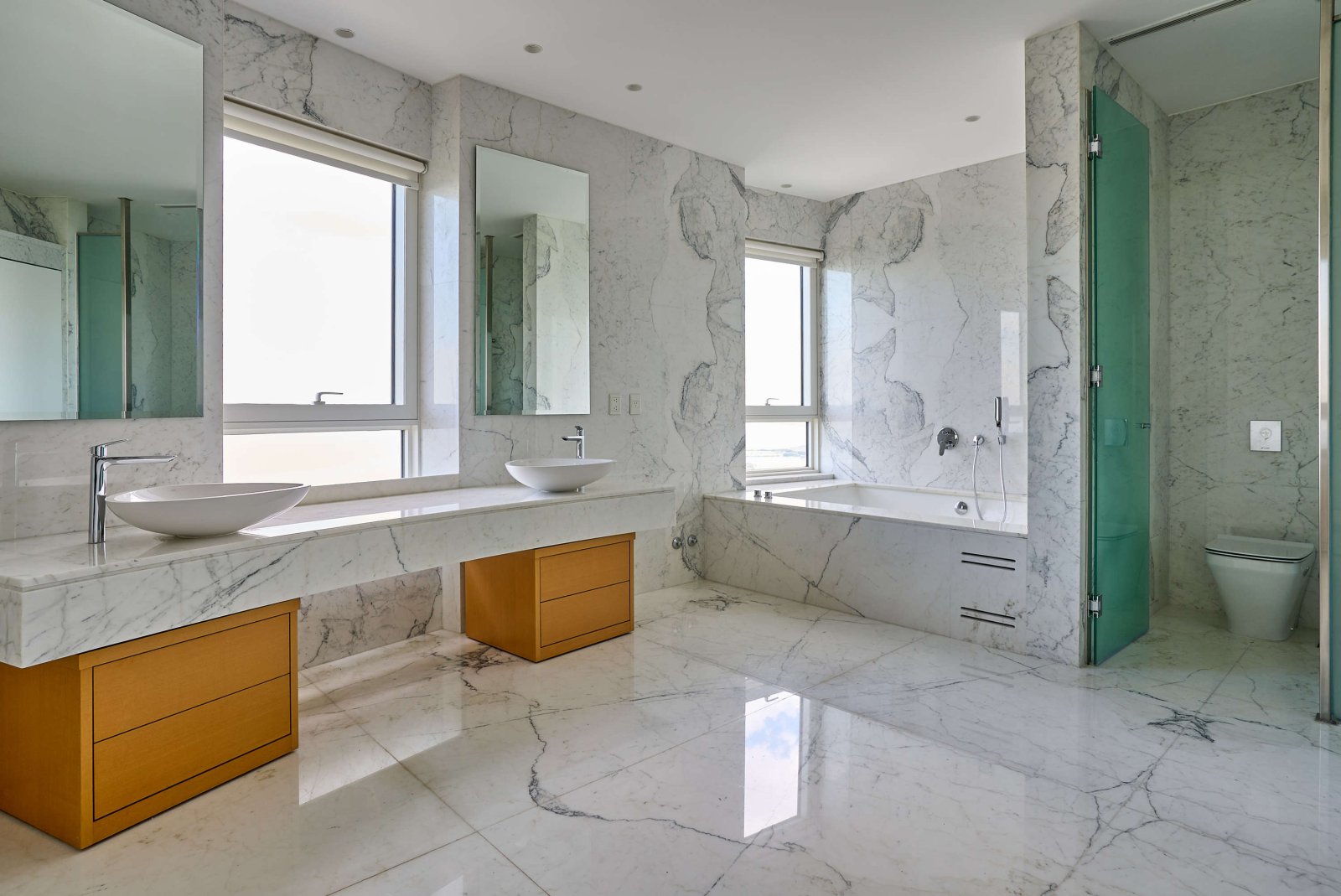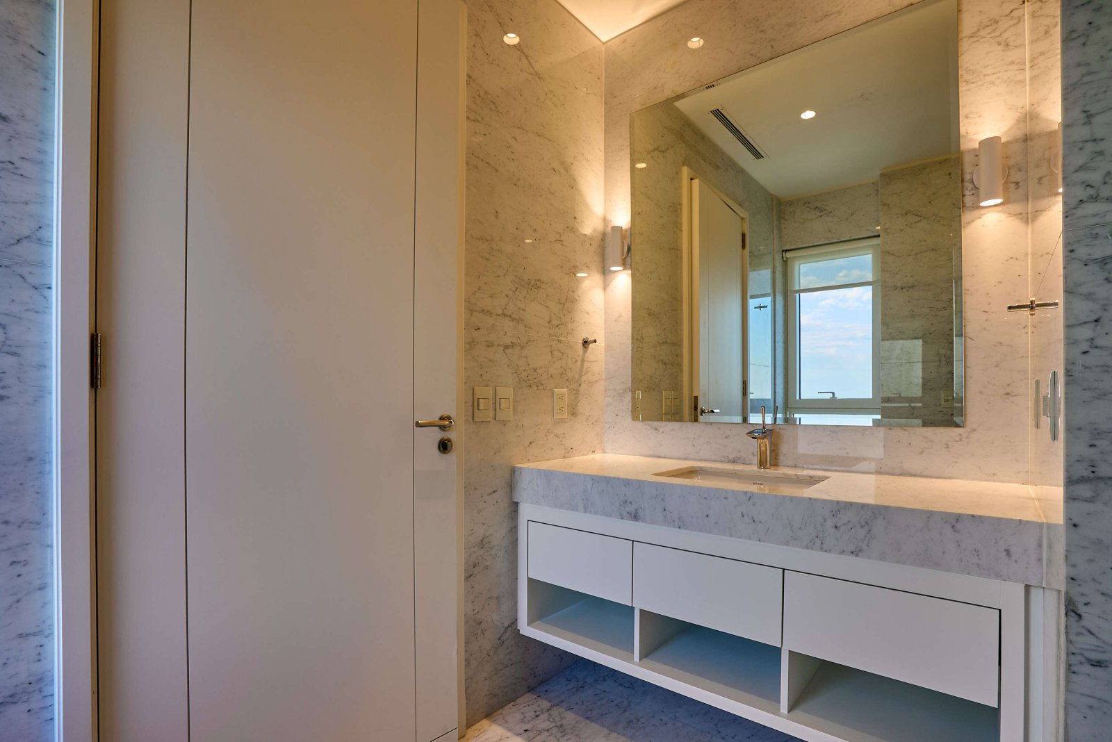 El departamento se encuentra equipado con aire acondicionado central frío/calor regulable por ambiente, cortinas eléctricas e iluminación de diseño. Los materiales reflejan un estándar internacional de excelencia, con mármol importado de Italia, cuarcita sudafricana y griferías Hansgrohe. Todos los ambientes gozan de gran luminosidad natural y una altura libre de 3,30 metros, que aporta amplitud y jerarquía a cada espacio.