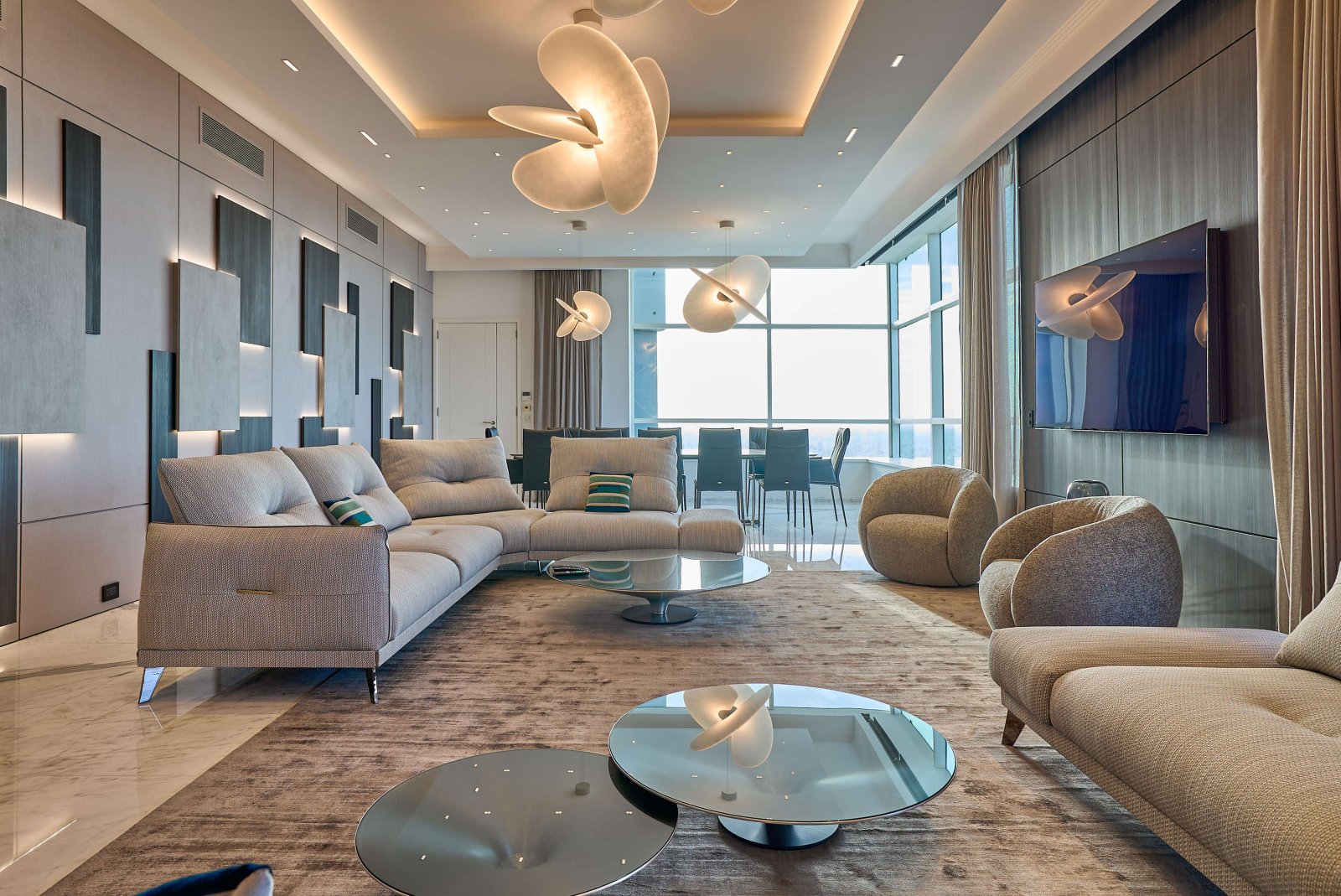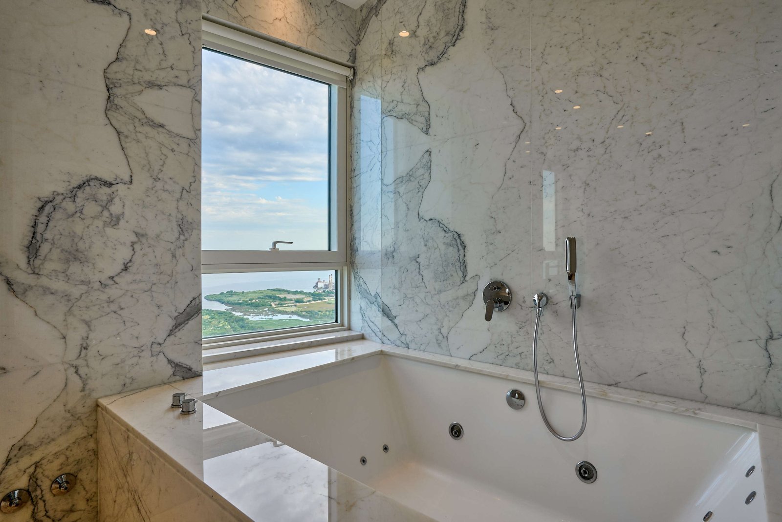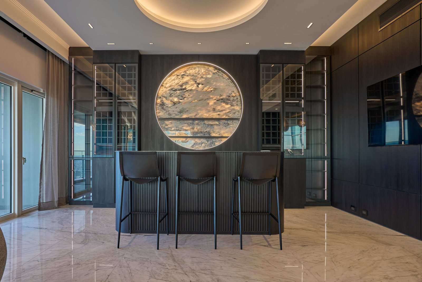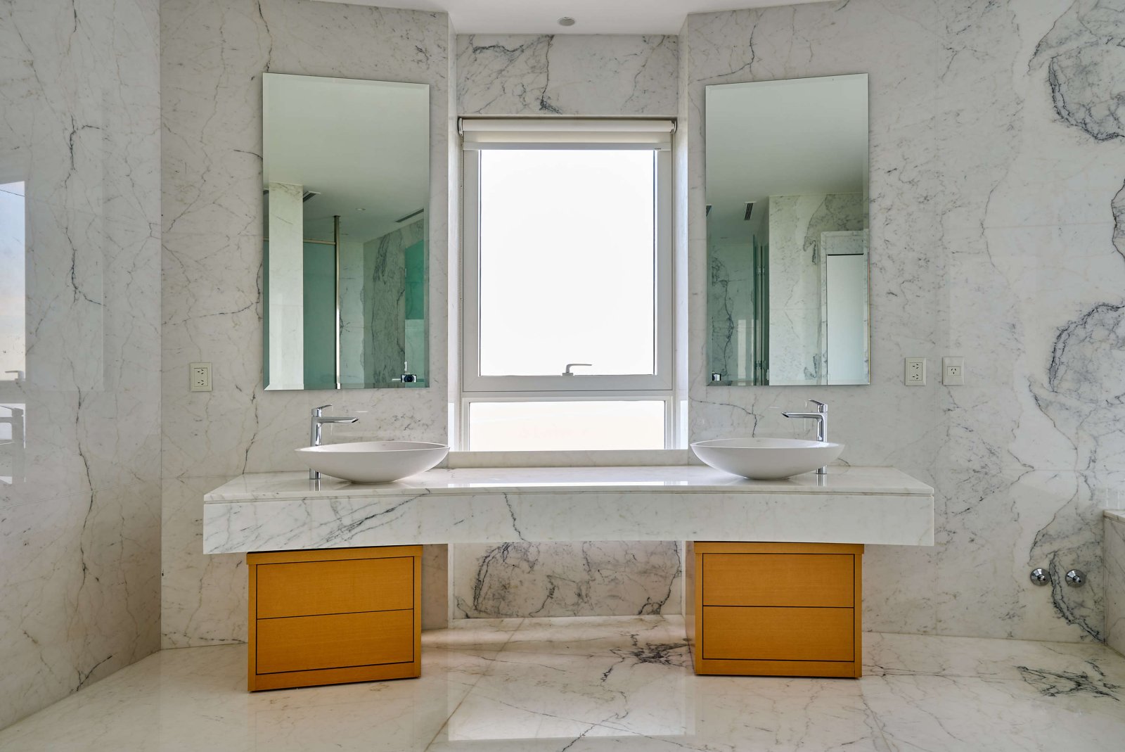 El departamento se encuentra equipado con aire acondicionado central frío/calor regulable por ambiente, cortinas eléctricas e iluminación de diseño. Los materiales reflejan un estándar internacional de excelencia, con mármol importado de Italia, cuarcita sudafricana y griferías Hansgrohe. Todos los ambientes gozan de gran luminosidad natural y una altura libre de 3,30 metros, que aporta amplitud y jerarquía a cada espacio.