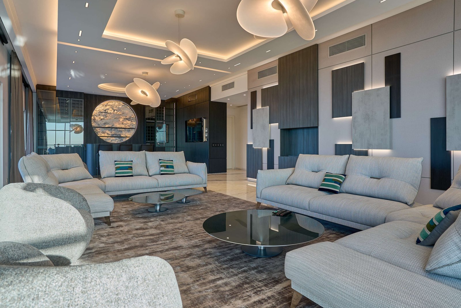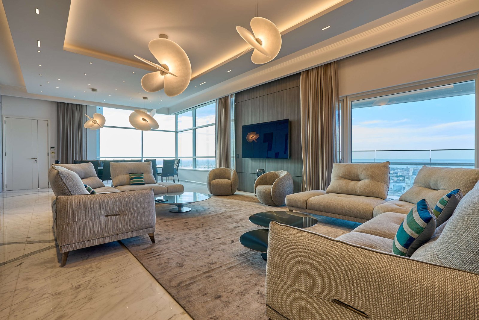 La residencia presenta un estilo único y terminaciones de primer nivel. Cuenta con palier privado y acceso mediante dos ascensores principales. Al ingresar, se destaca un gran living comedor con vistas abiertas y espectaculares al Río de la Plata y a la ciudad, acompañado por un amplio balcón, placard de recepción y toilette.