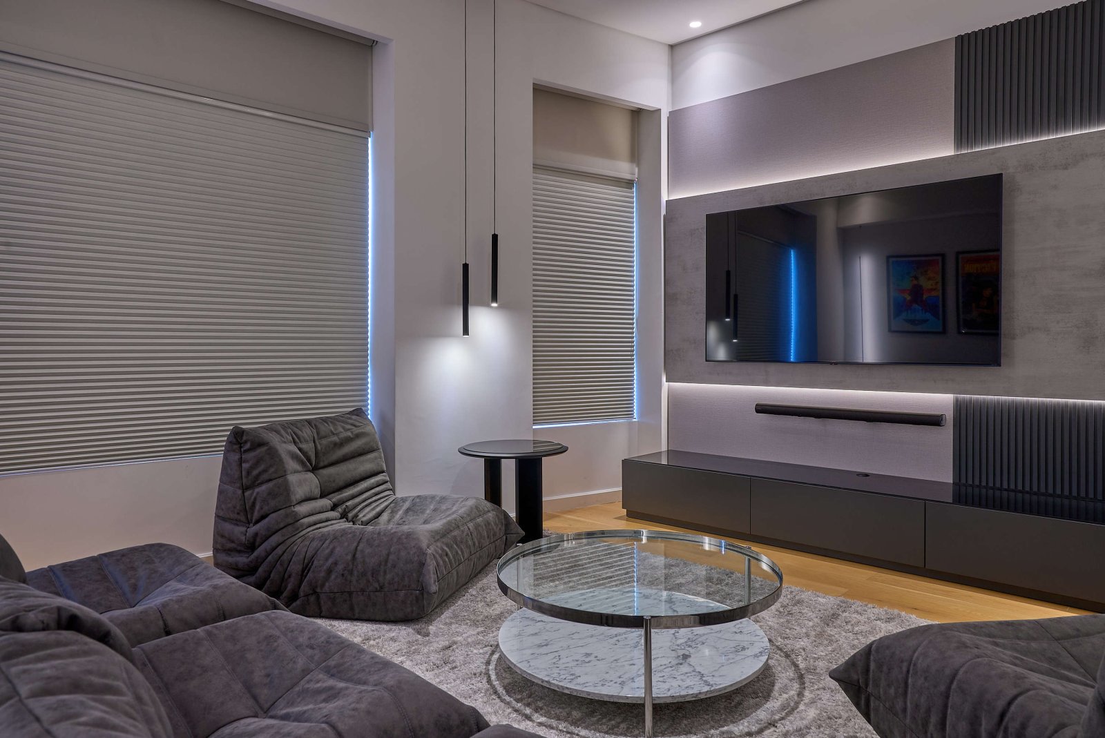 El área privada se compone de cuatro dormitorios en suite, incluyendo una master suite de generosas dimensiones con doble vestidor y baño principal. Además, la unidad dispone de un family room o sala de TV que puede funcionar como quinto dormitorio, y un playroom con baño propio, ideal para múltiples usos.