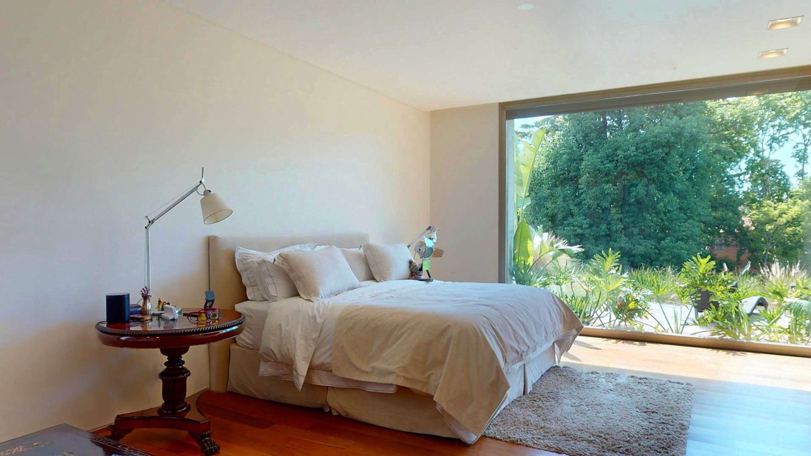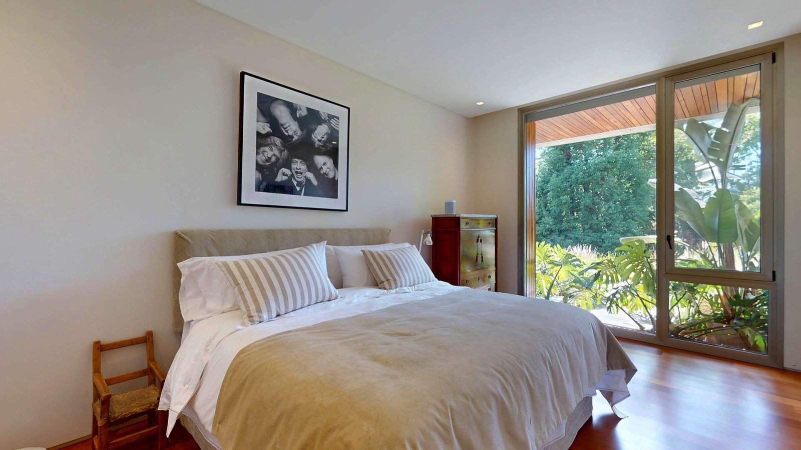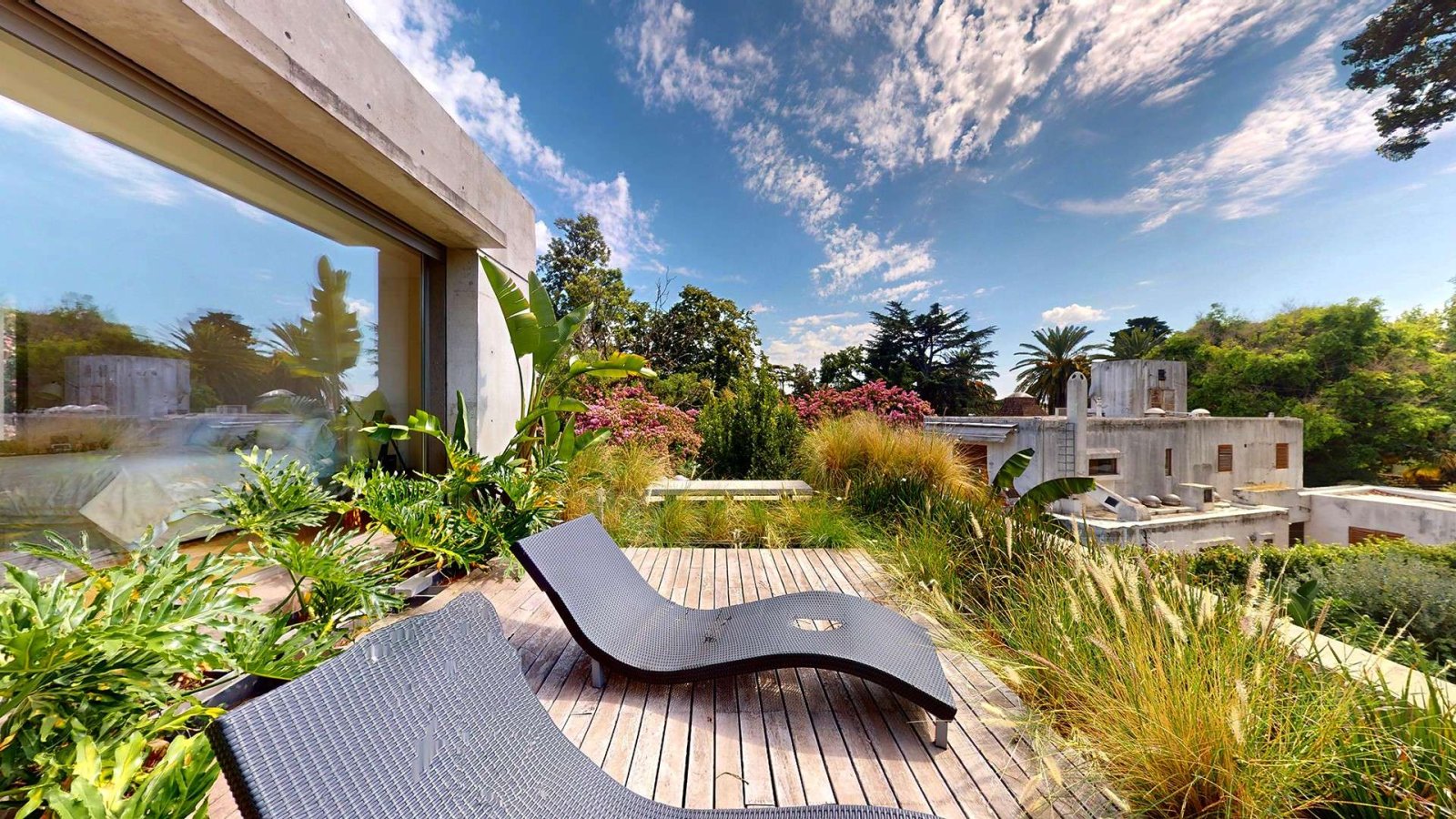 En la planta alta, un luminoso hall de distribución da acceso a la master suite, que se destaca por su privacidad y confort: acceso con clave y huella digital, espacio para escritorio, gran vestidor en madera y un baño compartimentado con doble bacha e hidromasaje. Desde el dormitorio se accede a un deck privado con vistas abiertas al jardín.