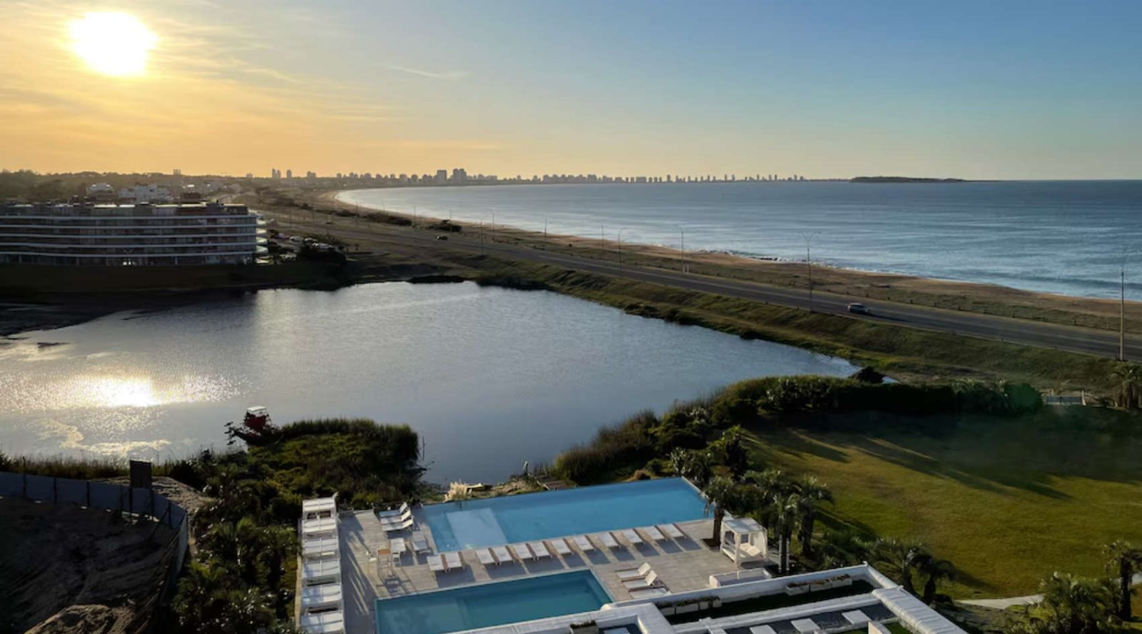 Ubicado en la parada 40 de la mansa. Es la reconocida postal de la entrada a Punta del Este, que no solamente se encuentra frente al mar, sino que cuenta con la particularidad de poseer costa de Laguna, lo que le otorga una vista única del mar, la Península y Laguna del Diario.