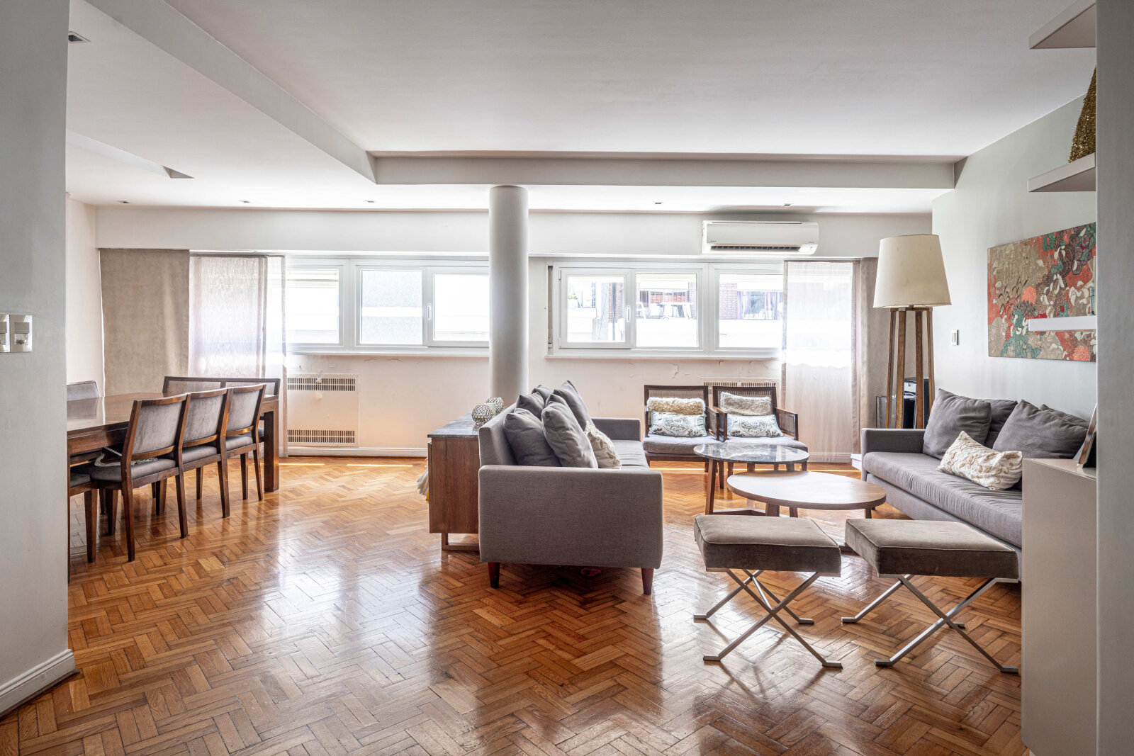 Techos altos, pisos de parquet en excelente estado y aberturas nuevas completan la propuesta. Departamento mayormente eléctrico, con cocina a gas, expensas bajas, baulera y una cochera a 150 metros.