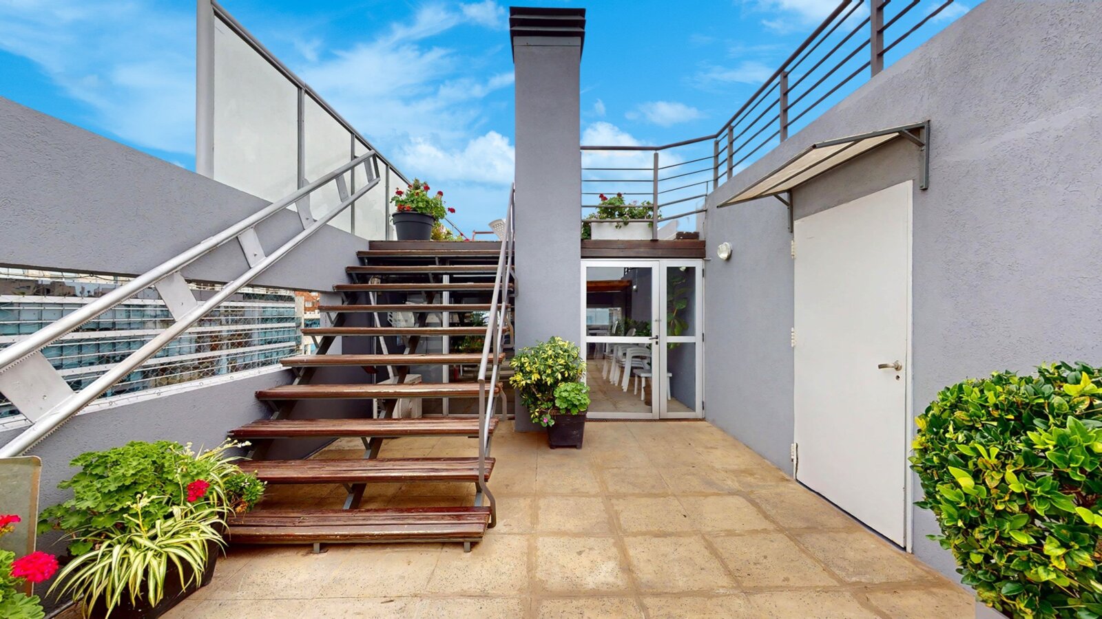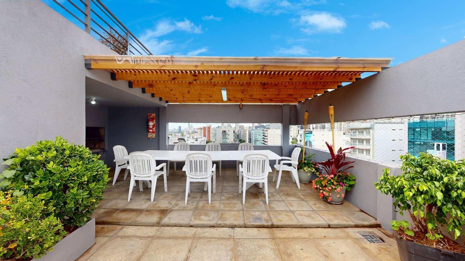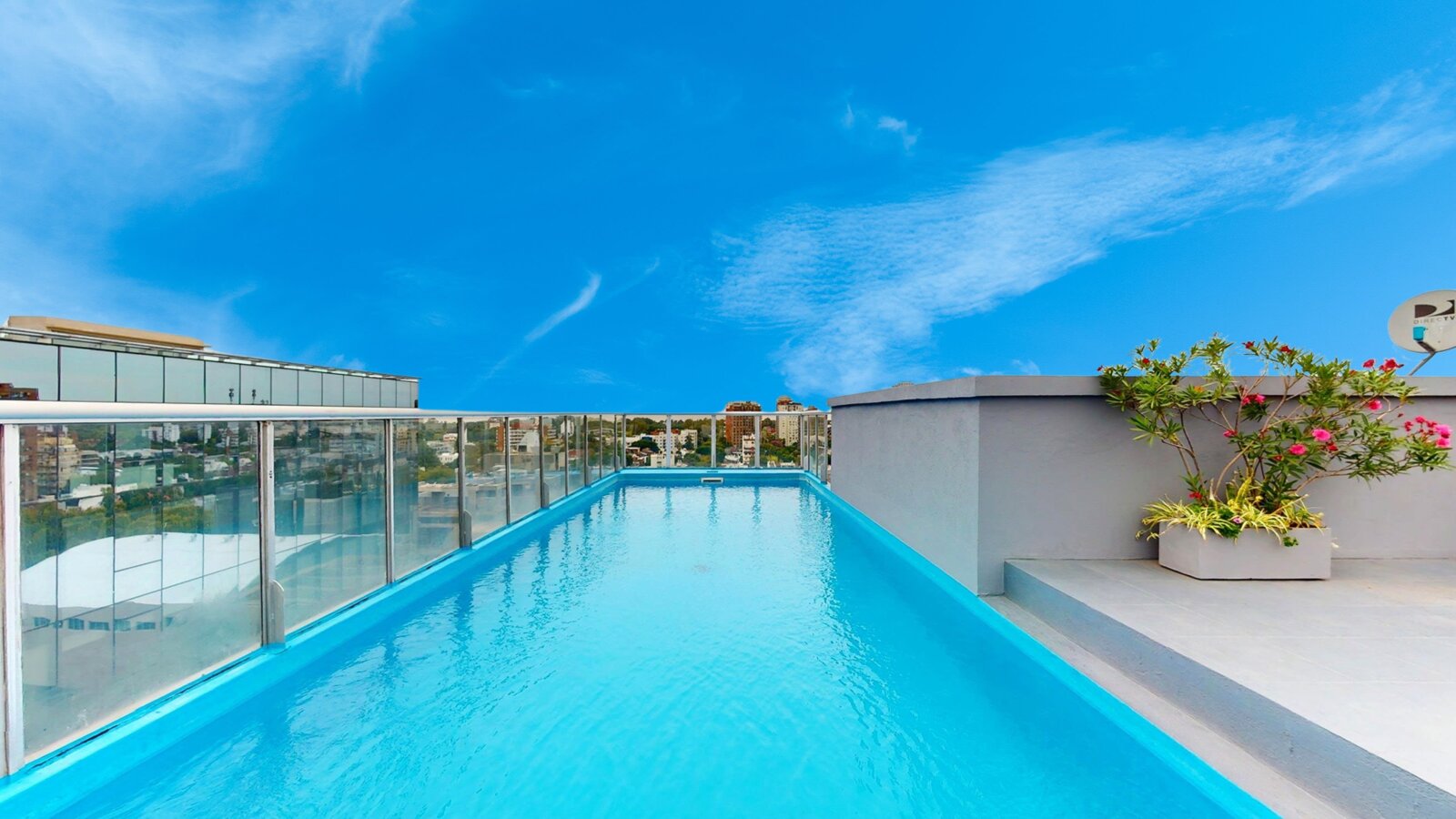 La propiedad se encuentra en un 5° piso al frente, con excelente luminosidad y un amplio balcón que extiende el área social hacia el exterior.