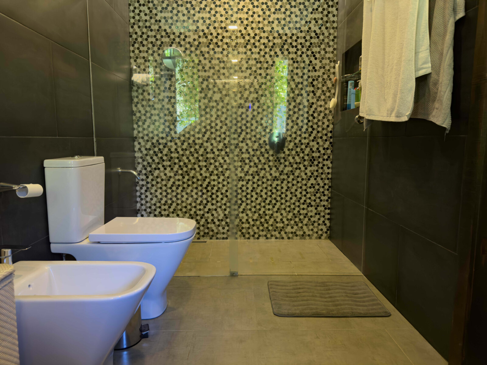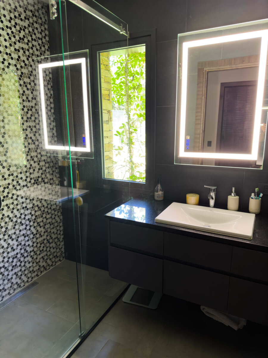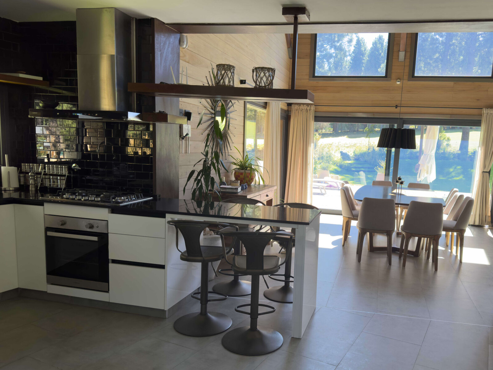 En el exterior, un deck aterrazado de madera se proyecta hacia la piscina climatizada, rodeada de un jardín parquizado con riego automatizado e iluminación escenográfica, generando un ambiente ideal para el relax y el entretenimiento.