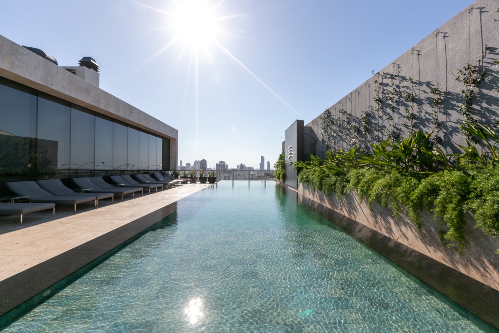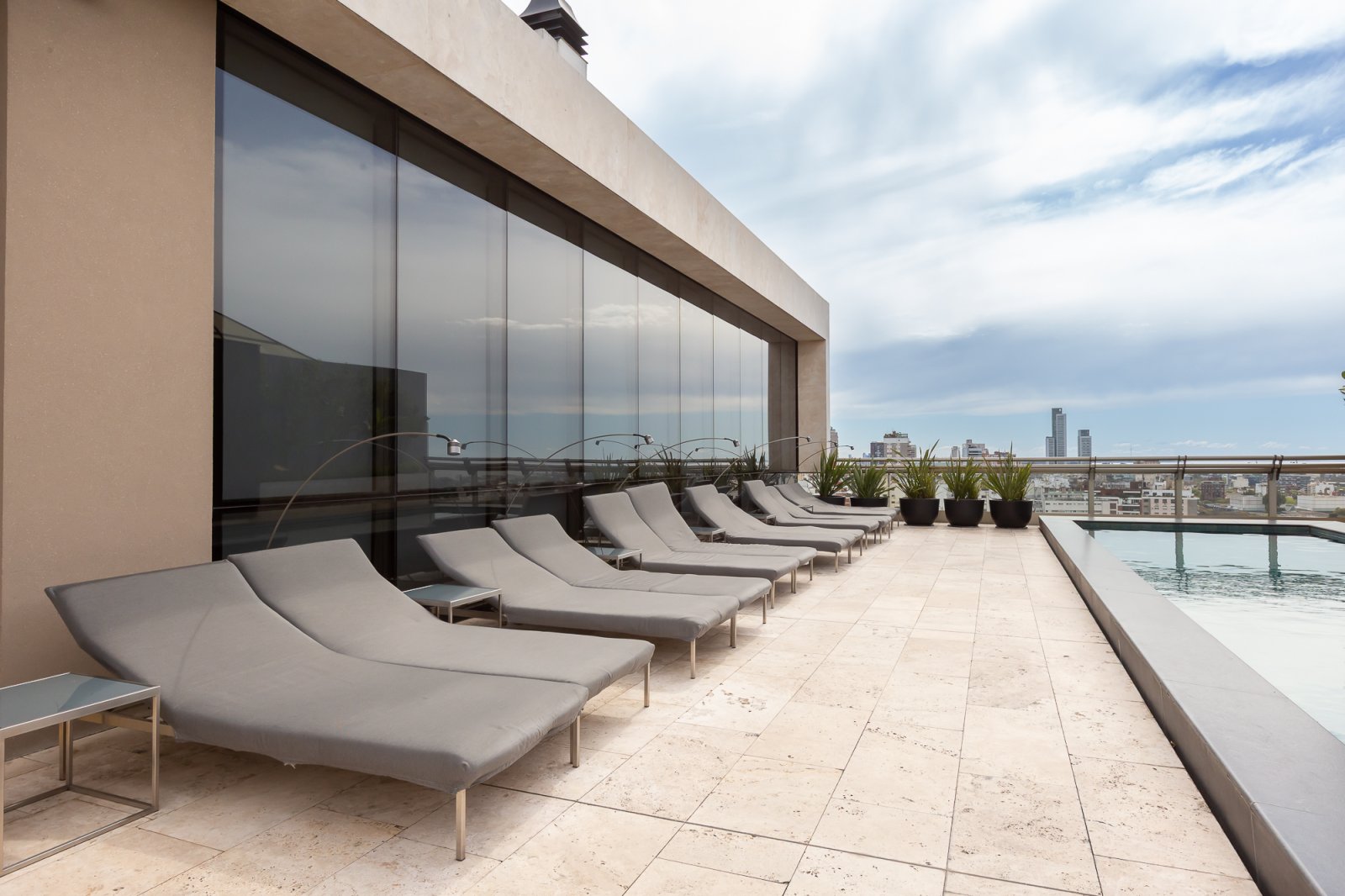 El edificio ofrece amenities de primer nivel: piscina en terraza con vista abierta, piscina interior climatizada, sauna, sala de masajes, gimnasio, SUM, sala de cine, además de baños de recepción en PB, terraza y vestuarios.