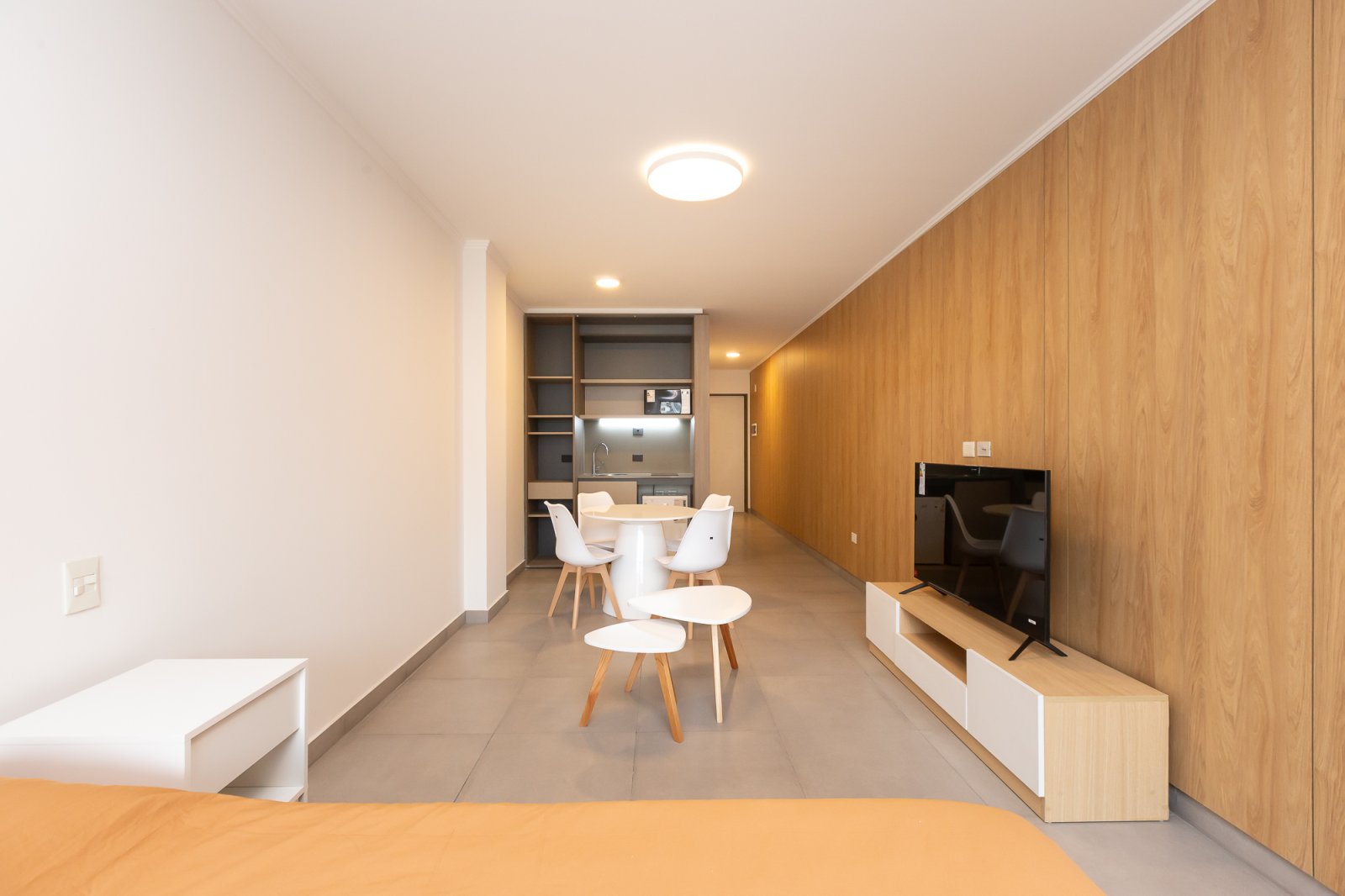 Este amplio monoambiente permite sectorizar fácilmente dormitorio y living/comedor. Cuenta con amplio vestidor, baño completo con revestimientos y terminaciones de categoría, cocina con anafe eléctrico y cerramiento, aire acondicionado split frío-calor.