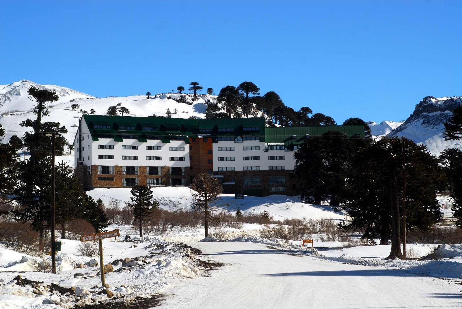 El edificio tiene 7.200 m2 cubiertos, repartidos en 6 plantas, con una capacidad actual de 252 camas. El Hotel permite ampliarlo, ya que está construido sobre 2.5 ha en un bosque de araucarias. Es una ubicación única y exclusiva ya que sus alrededores son parque nacional y el mismo se encuentra ubicado sobre la ladera de una montaña.