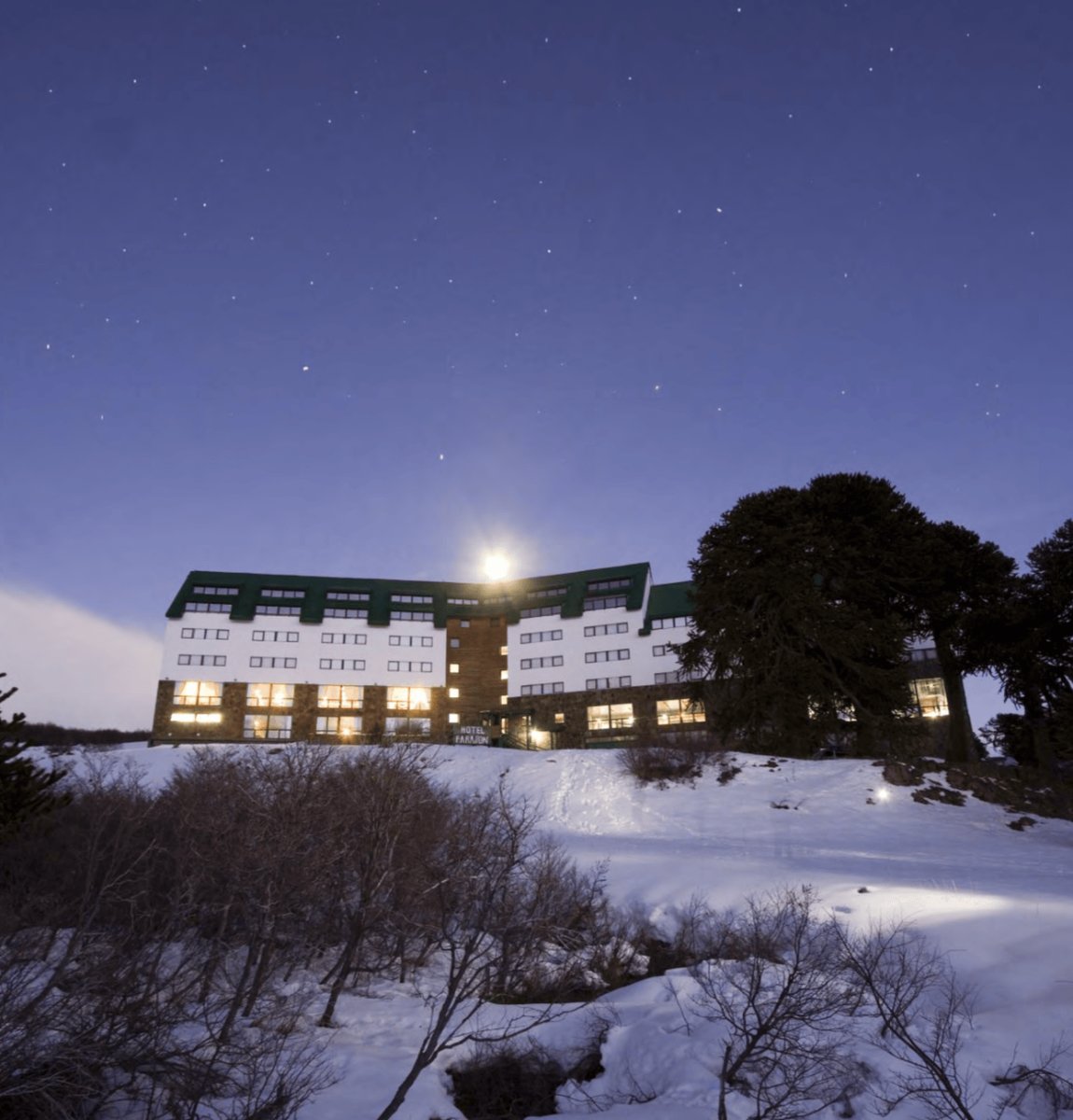 El Hotel Farallón (1.650 m sobre n/m) está situado dentro del Parque Provincial Copahue, en la base misma del Volcán Copahue, dista tan solo 150 metros del Centro de Esquí, desde donde se aprecia la majestuosa vista del Lago Caviahue y del Volcán.