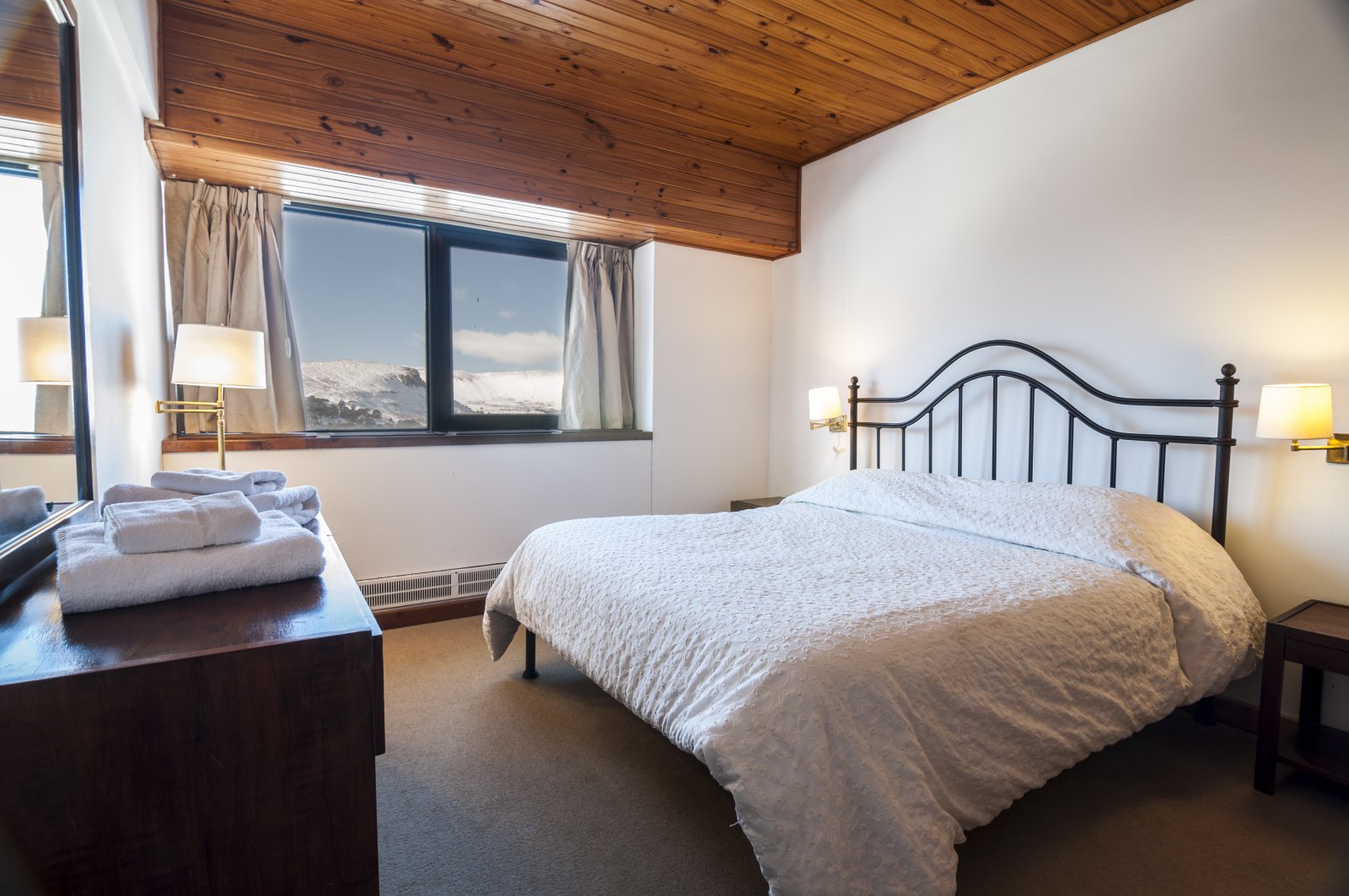 el lago o las montañas, televisión con DTV, teléfono, microondas, heladera, y secador de cabello.
