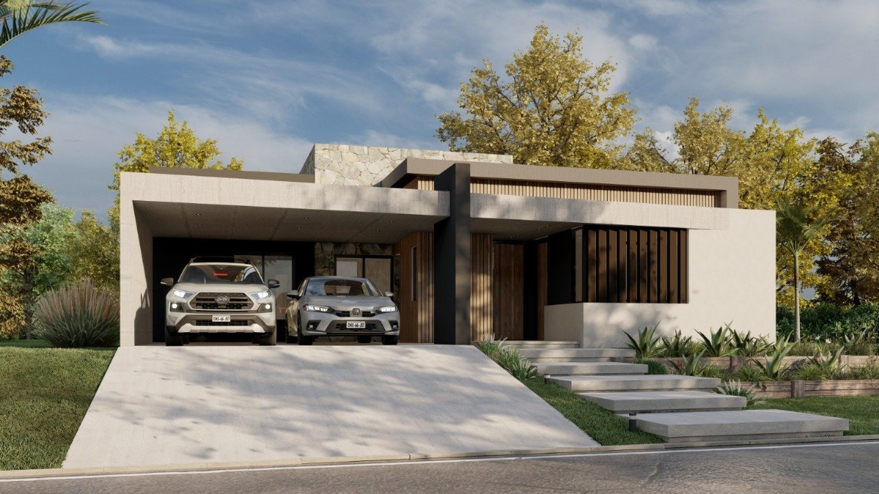 Esta casa se destaca por su estilo moderno con hormigón a la vista, detalles de categoría y ambientes amplios, pensados para el confort y la vida en familia.