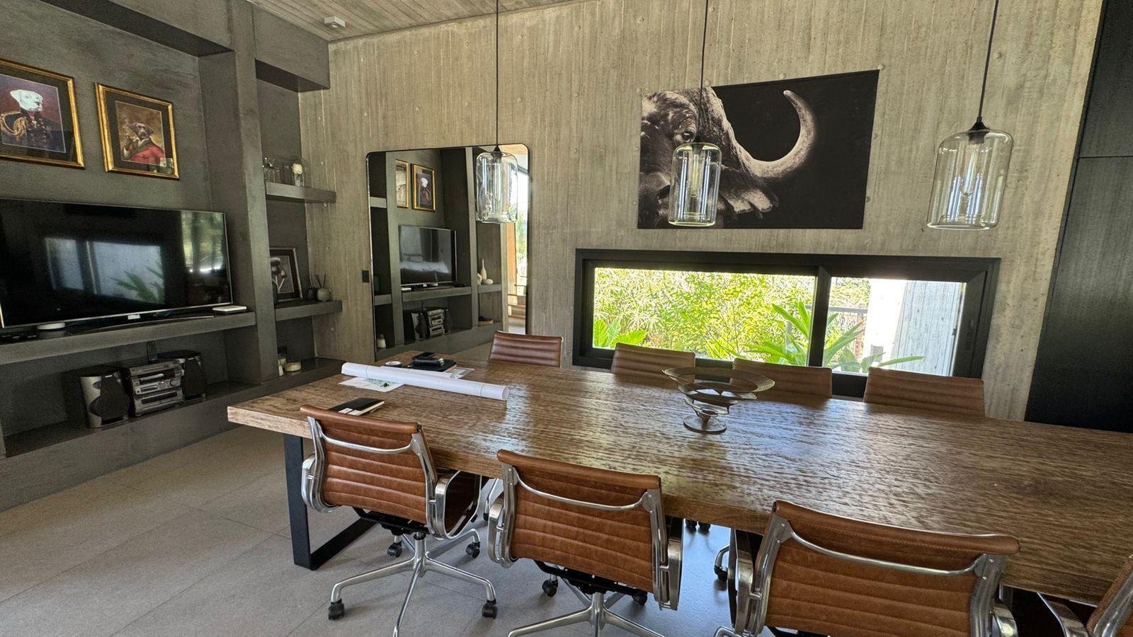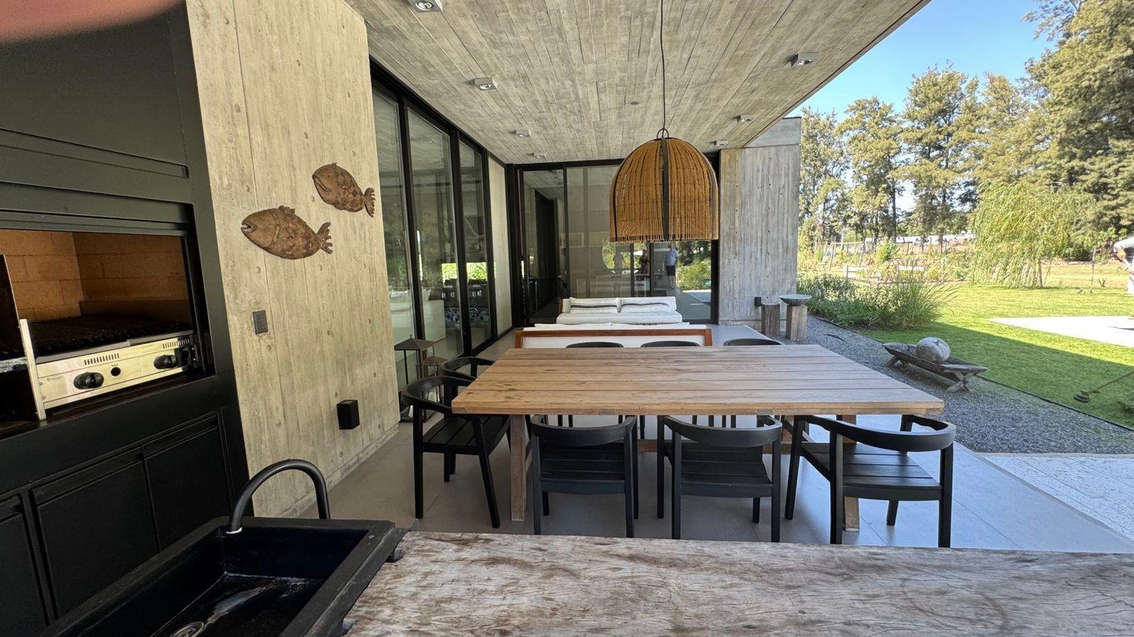 La propiedad cuenta con una cocina completa con living comedor integrados, estar, toilette, lavadero, quincho con parrilla y baño de pileta.