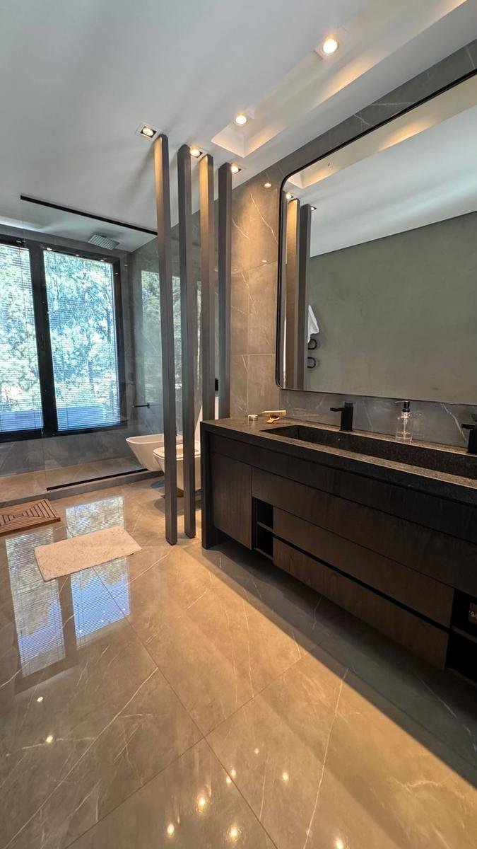 Estar comedor , con cocina integrada, playroom / sala de TV, toilette , lavadero, sala de maquinas, galería amplia con calefacción por losa radiante, parrilla combinada gas y carbon , baño de pileta