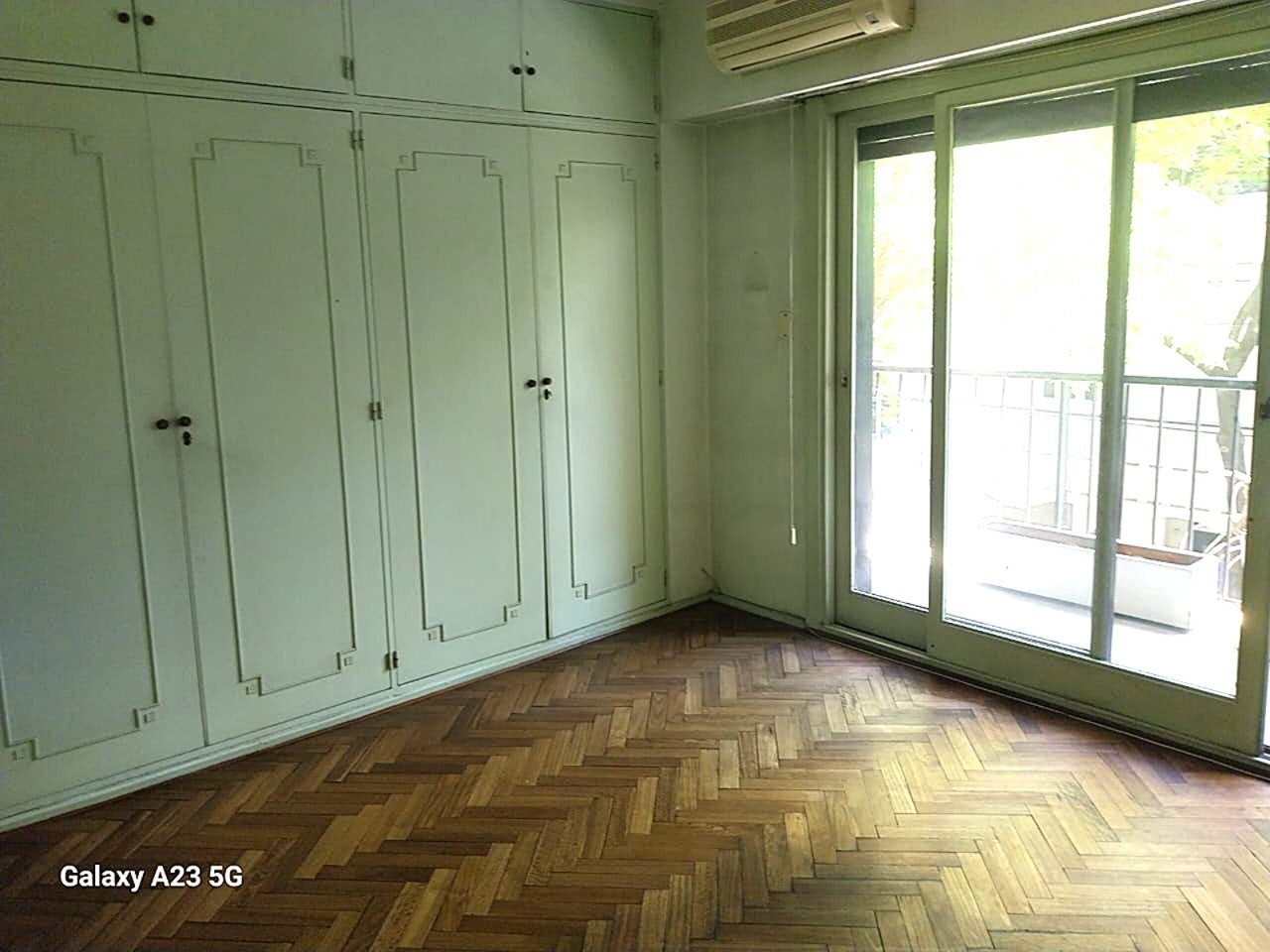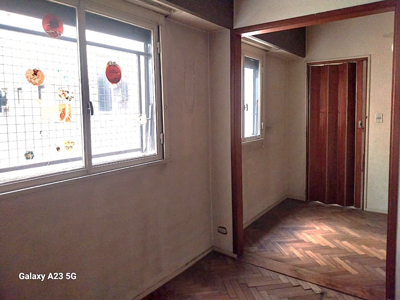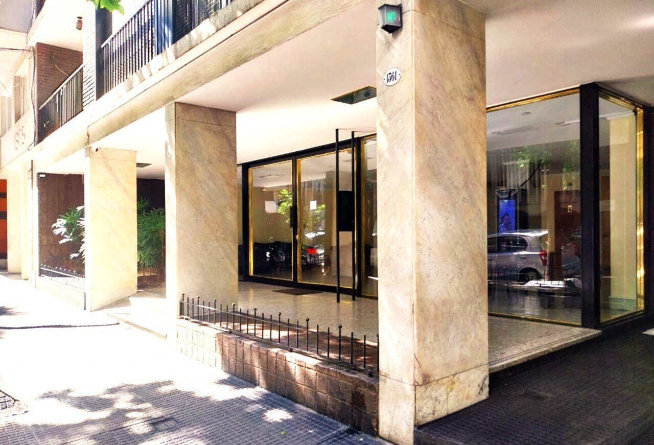 Edificio luminoso de doble frente y amplia recepción con jardines y muy luminoso, con totem, entrada principal, de servicio y de cocheras. Piso en orientación noroeste, en calle tranquila. Puerta principal con pallier compartido y puerta de servicio. Se ingresa a un pequeño hall, comedor y living que da al frente y termina en un balcón francés. Se divide el área privada con una puerta, en ella se encuentra un toilette reciclado hace diez años, una habitación con placard con interiores en muy buen estado, dos ventanas al aire y luz, ampliado mediante un arco hacia otra pequeña, un baño completo de época en excelente estado, la habitación principal con amplios placards buenos interiores y balcón al frente ideal para una mesa de jardín y dos sillas. La habitación principal tiene un split, la calefacción es mediante loza radiante. Se accede a la cocina mediante la puerta de servicio y también desde el hall de recepción, se ha incluido una apertura adicional en la pequeña habitación con el arco. La cocina, de amplio ventanal, anafre, calefón, horno, ha sido reciclada a nuevo hace 10 años, los muebles de bajo y alto y las mesadas de granito también, el baño de servicio con ducha, y el lavadero incorporado. Cuenta con un espacio para poner mesa para el desayuno. Da al aire y luz y cuenta con amplio ventanal.