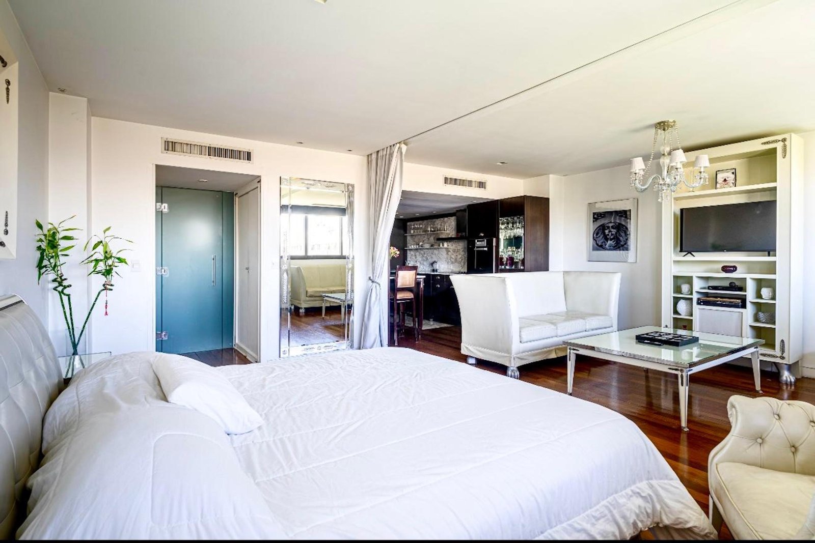 La unidad cuenta con dormitorio en suite con vestidor, living-comedor, cocina totalmente equipada y decoración de diseño con detalles de categoría. Dispone de conexión Wi-Fi y acceso a todos los servicios del complejo.